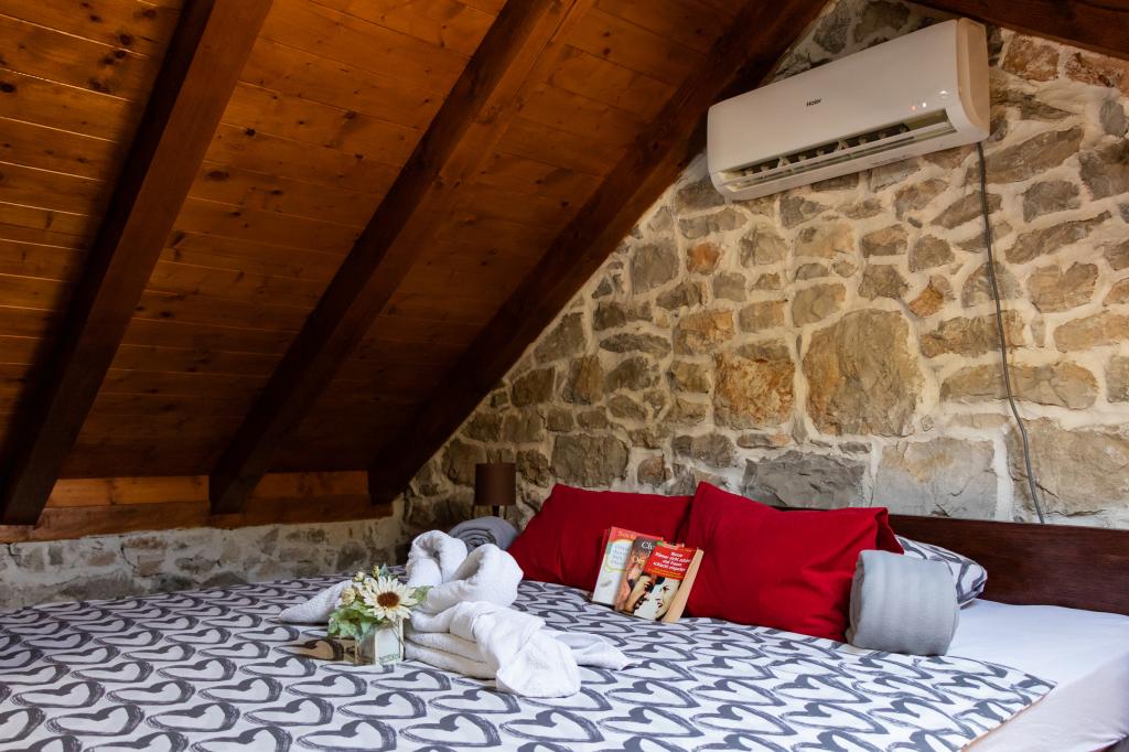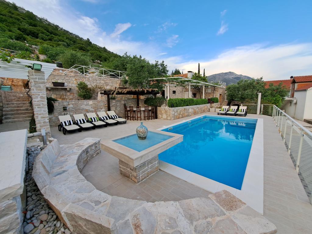 Stilheden og atmosfæren i Middelhavet, som det engang var, intimitet og enkelhed kombineret med uhøjtidelig luksus, kan findes i den gamle landsby Stanković, bygget i det 15. århundrede, over Orebić. Mørkt træ i kombination med hvid sten, gamle lysegrønne nuancer af helvedesild og luksuriøst interiør efterlader ikke gæsterne ligeglade. Villaen har plads til 14 personer og byder på en udendørs swimmingpool, en jacuzzi med et vandfald, et playstation-rum, et fitnesscenter, en børnepark, en udendørs grill og masser af skygge til en eftermiddagssiesta. Hele ejendommen på 2000m2 er ideel til en rolig familieferie og forbinder familie og venner. Det består af: 3 huse - Azur, Wood, Ston. I alt 7 soveværelser. Fjernsyn, klimaanlæg, opvaskemaskiner og andre apparater får dig til at føle dig hjemme. TRÆHUS-4 PERSONER!! Landsbyen Stanković er en ideel base for at udforske øen, eller du kan slappe af på en gåtur i naturen med udsigt over havet, der dufter af middelhavsvegetation. Du er kun 15 minutter væk fra byen og stranden, mens du nyder vores skjulte skat.