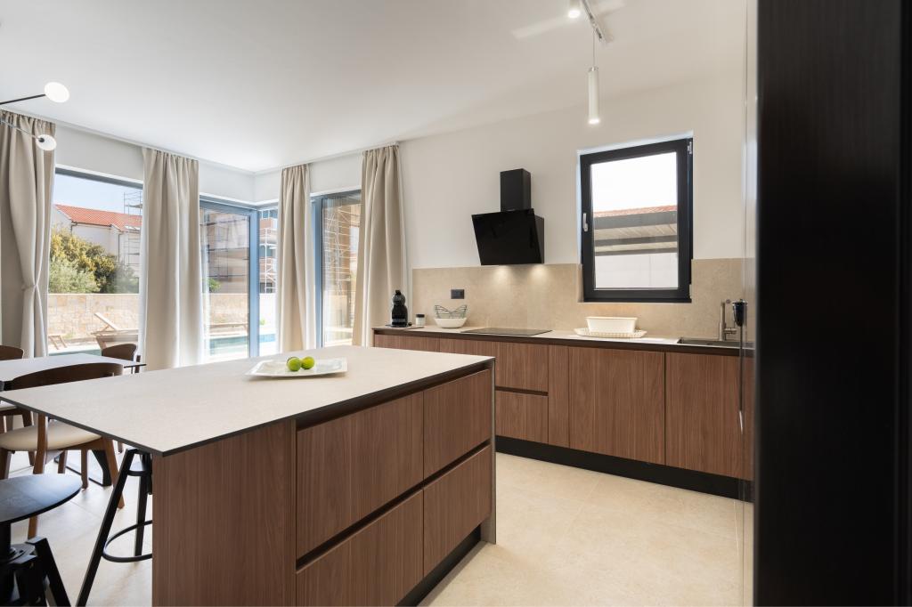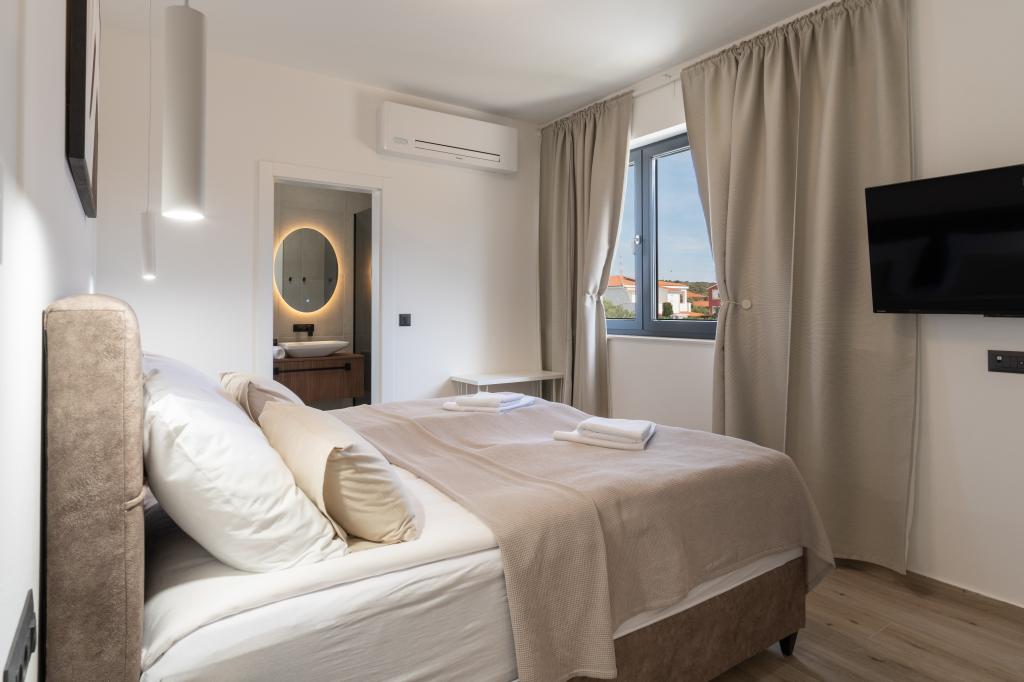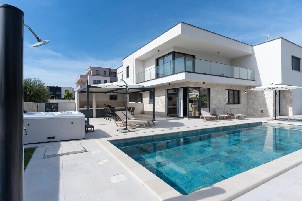 Denne villas særlige faciliteter er en privat opvarmet pool, jacuzzi og en rummelig sommerterrasse. Prestige Villa COMPADRE ligger i den rolige kystby Mandre på øen Pag og tilbyder 4 moderne indrettede soveværelser og 4 badeværelser med bruser. Det fuldt udstyrede køkken omfatter komfur, køleskab, opvaskemaskine, ovn og alt nødvendigt køkkenudstyr. Gæsterne kan nyde den udendørs grill, slappe af i det komfortable siddeområde eller slappe af ved poolen og jacuzzi'en. Villaen har aircondition, fladskærms-tv, vaskemaskine, egen indgang, minibar og udsigt til haven. Denne villa er ideel til familier eller grupper og kombinerer luksus og komfort i et elegant boligareal på 230 m².