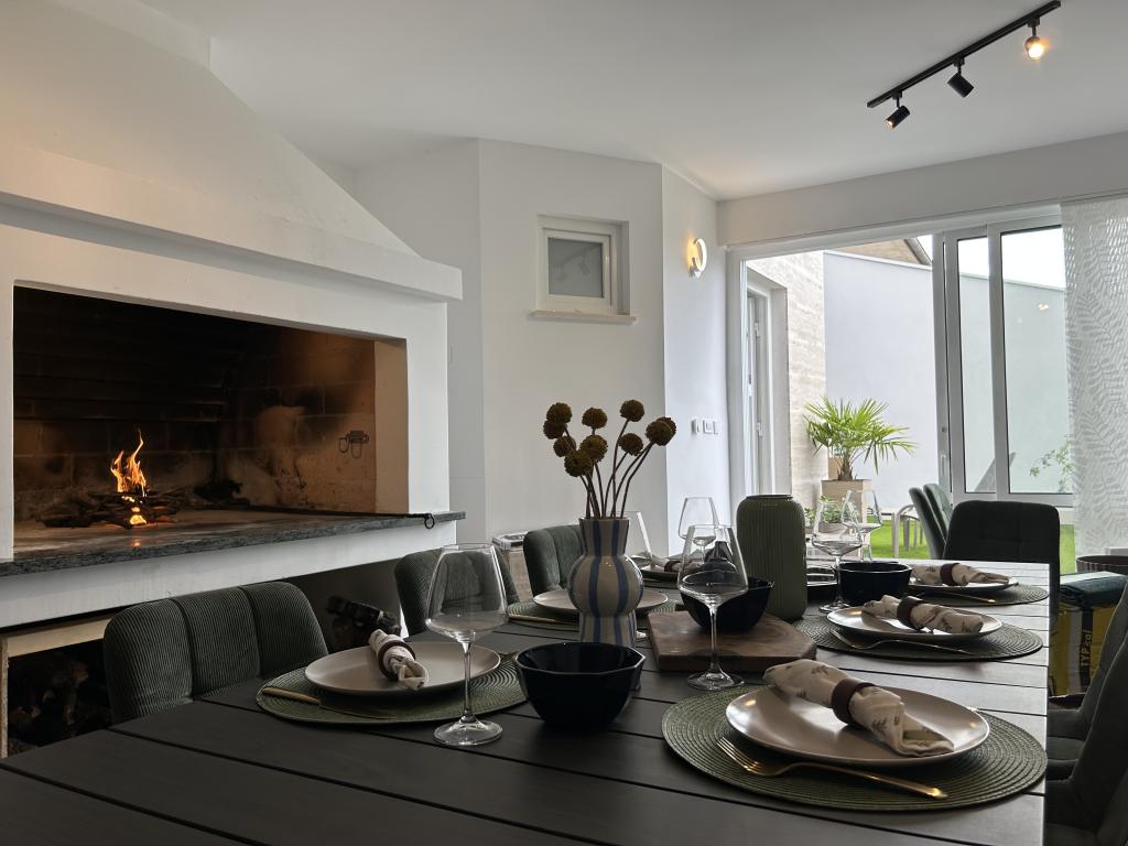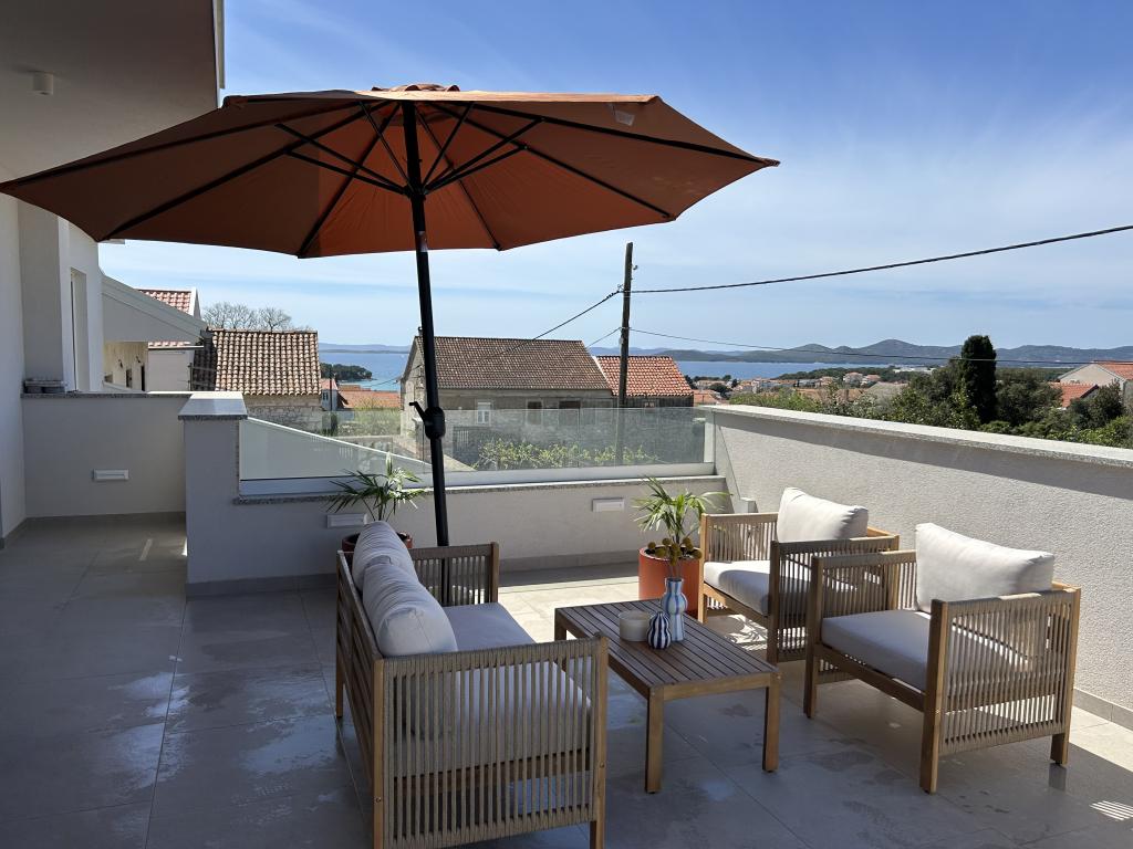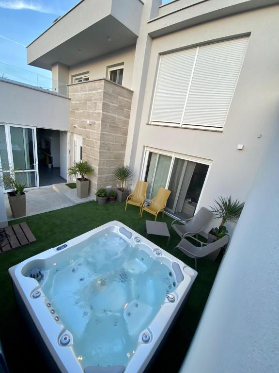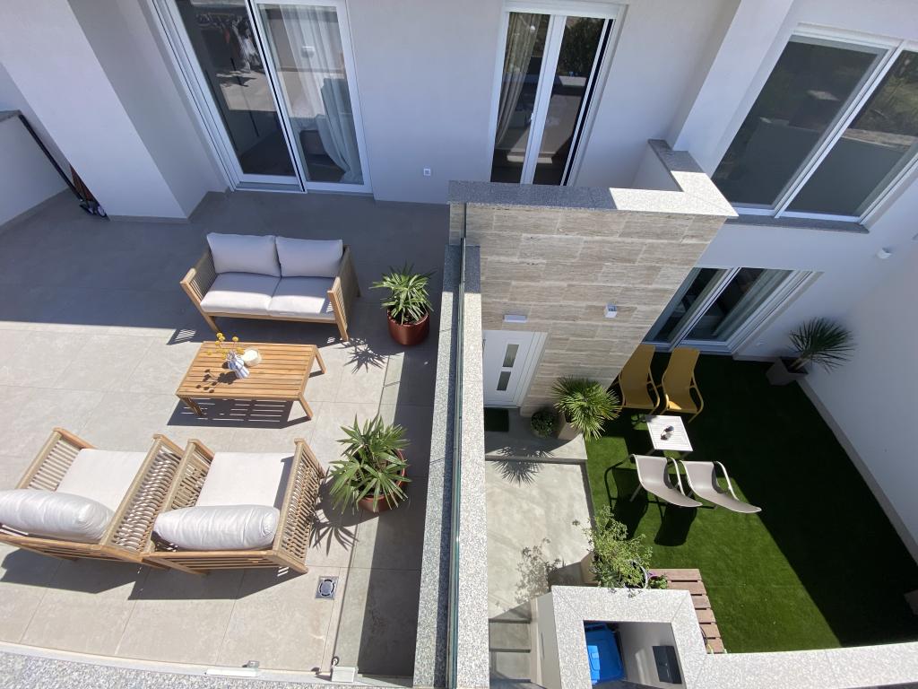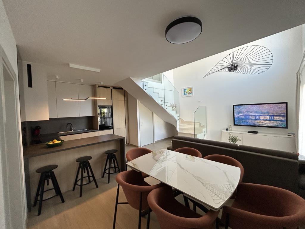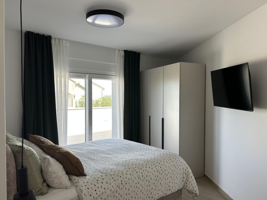 Elegant villa med 3 soveværelser, privat jacuzzi, rummelig terrasse med magisk havudsigt og et overdækket hjørne til grill og socialt samvær. Moderne udstyret køkken, komfortabel stue, hurtig Wi-Fi og sikker parkering. Ideelt sted for en ubekymret og luksuriøs ferie i fredelige omgivelser, tæt på stranden og lokale faciliteter.