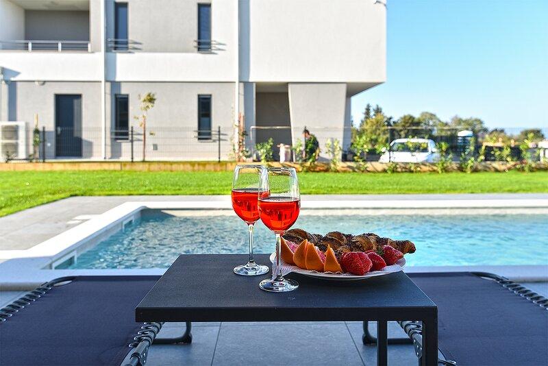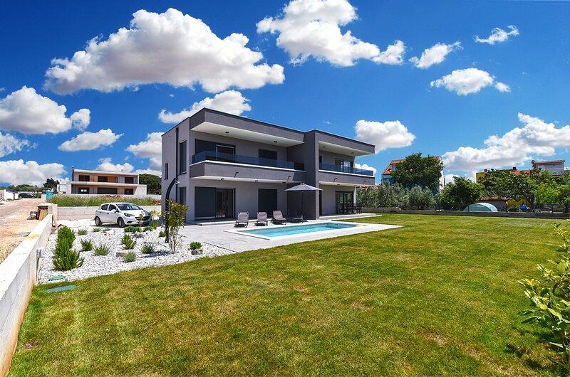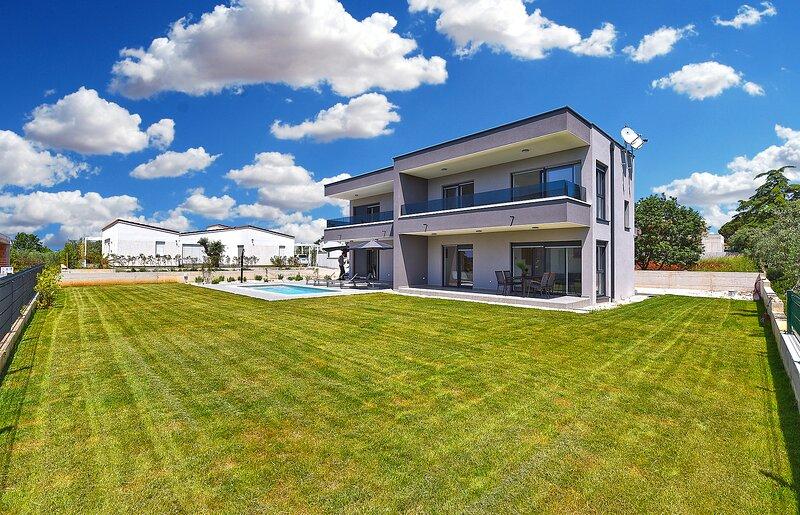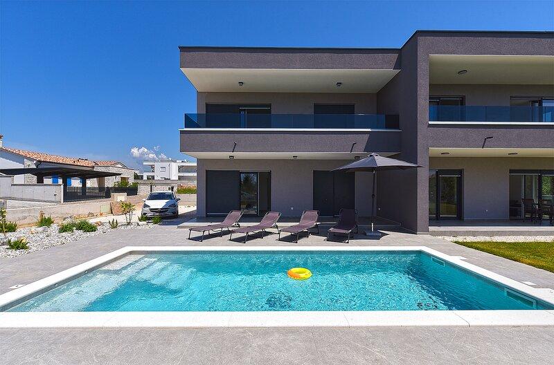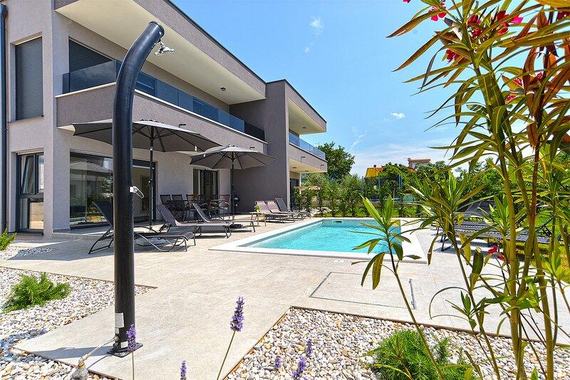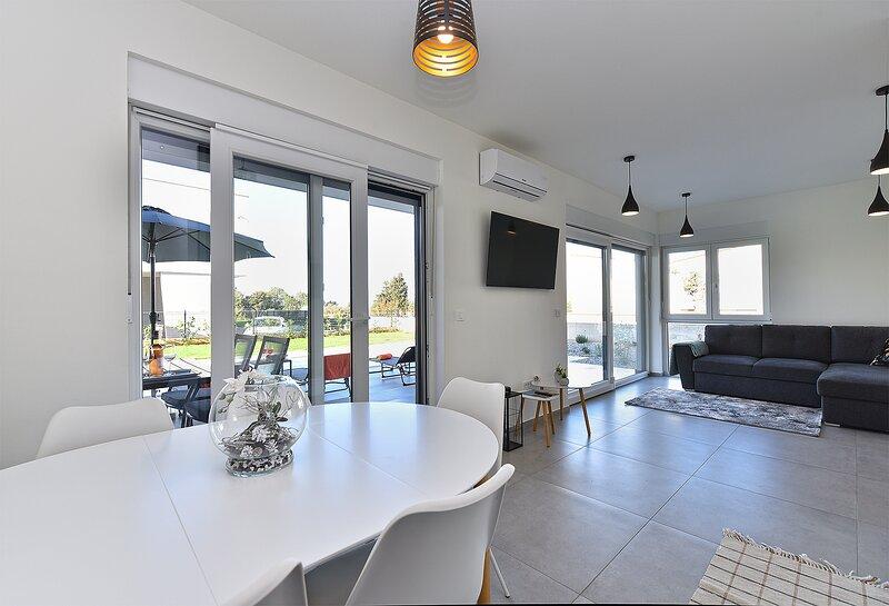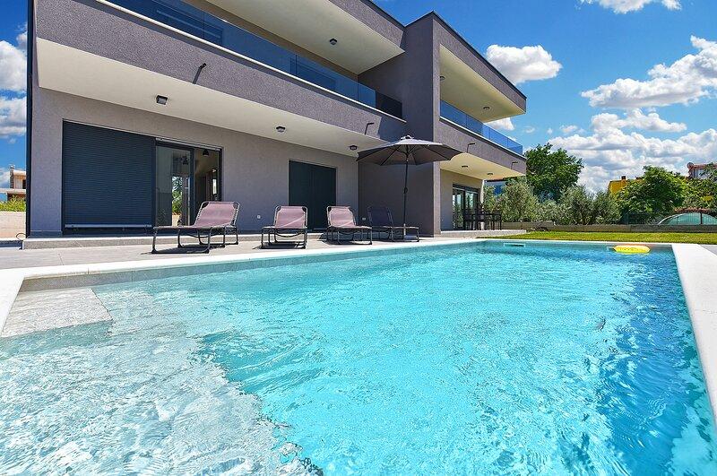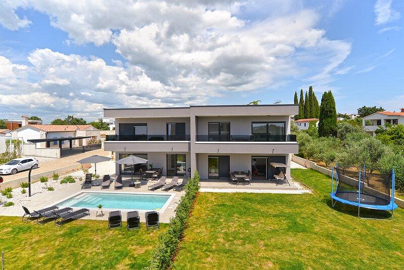 Villa Lippa med havudsigt byder dig velkommen i den fredelige landsby Peroj, nær Pula og Brijuni Nationalpark. Denne moderne designede villa er perfekt til en afslappende familieferie. Udendørsområdet er ideelt til at forfriske dig på den overdækkede terrasse og nyde den opvarmede pool om sommeren og før sæsonen. Villaen tilbyder komfortabel indkvartering til op til 12 personer i 4 soveværelser. Villa Lippa Peroj byder dig velkommen med et fad af istriske køddelikatesser og frisk grillet fisk - se kategorien med yderligere billeder. Villa Lippa i Peroj, nær Pula og den fortryllende Brijuni Nationalpark, er en moderne og smukt designet villa, der giver de perfekte rammer for en afslappende familieferie med en smuk udsigt over Adriaterhavet. Komfort og stil for hele familien Villa Lippa er designet til at give maksimal komfort og afslapning for op til 12 gæster. Med et moderne design og omhyggeligt udvalgte faciliteter er den ideel til familier eller vennegrupper, der ønsker at nyde et fredeligt miljø.