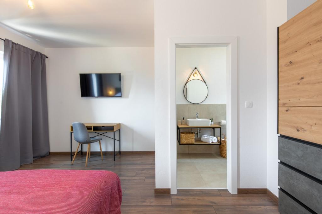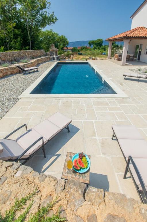 Villa Albina ligger i et roligt landområde i Skrpčići på øen Krk, meget tæt på byen Krk. Unik, renoveret på en måde for at bevare sin autenticitet, med mange rustikke detaljer. Huset byder på en meget romantisk, varm og behagelig atmosfære. Denne bolig er ideel, hvis du ønsker at tilbringe din ferie i et naturligt og afslappende miljø. Nyd den smukke 10x4 swimmingpool og det rummelige interiør i boligen, på første sal to rummelige soveværelser med eget badeværelse og balkon, en stor stue og et komplet køkken med alle hårde hvidevarer. Alle værelser i huset har aircondition og har gratis internet, to terrasser og en rummelig have med middelhavsurter og oliven skjult for indsyn.