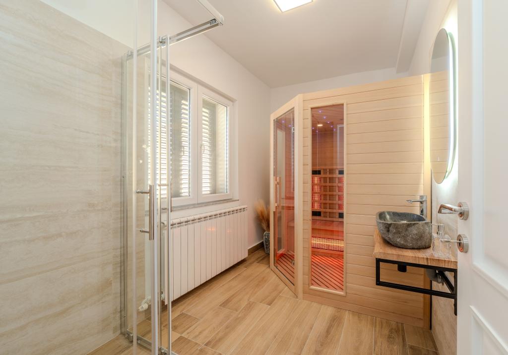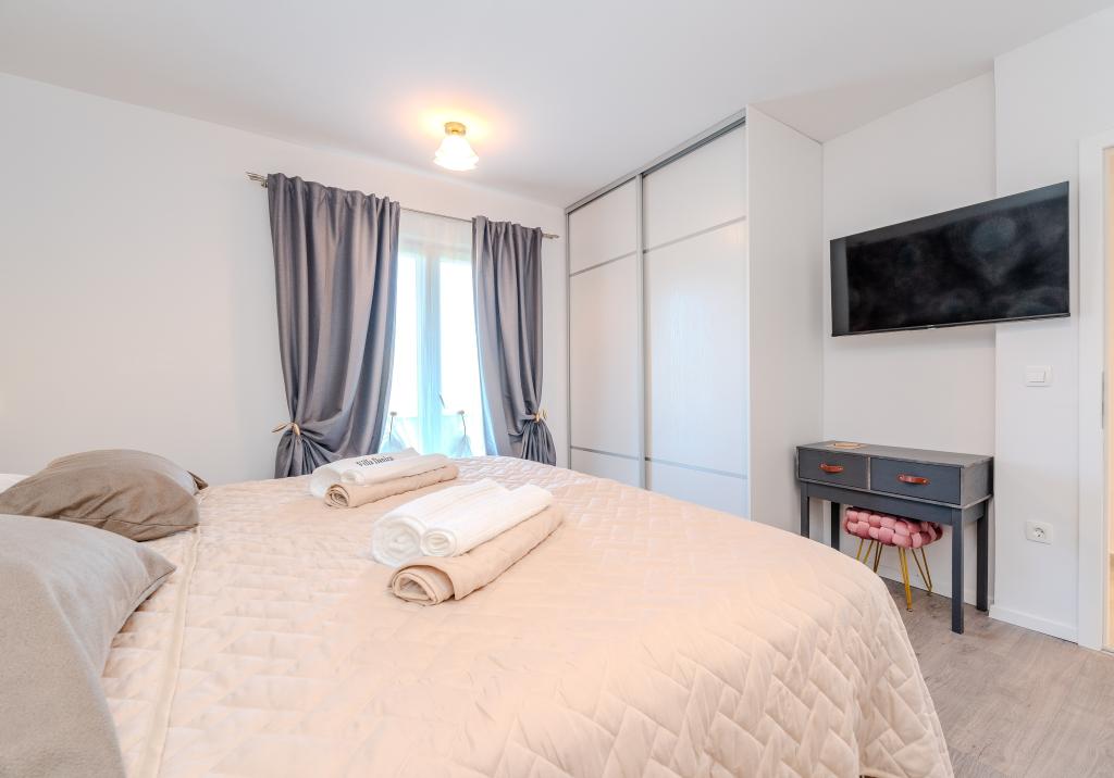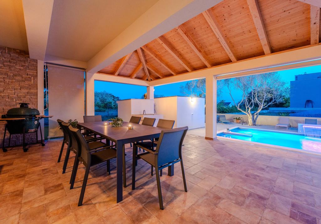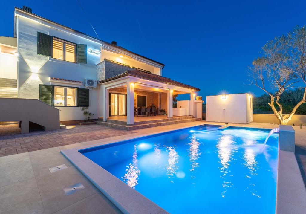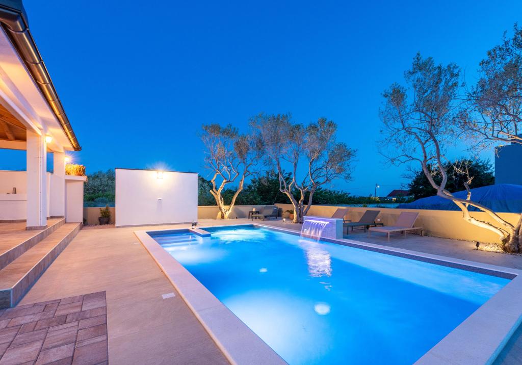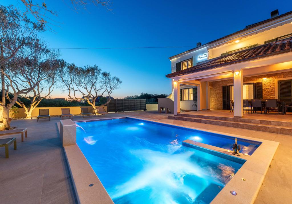 En varm velkomst til Villa Danica. Luksusvilla i Privlaka nær Zadar, en wellness-oase med aircondition, privat saltvandspool, opvarmet pool, smuk havudsigt og rummelig balkon. Nyd komforten med adgang til terrasse, bordtennis, billard, fitnesscenter, gratis privat parkering og hurtig Wi-Fi. Villaen har også en sauna. Vi ser frem til at byde gæster i alle aldre velkommen, inklusive yngre, og kæledyr er også tilladt. Den rummelige villa tilbyder et fuldt udstyret køkken med opvaskemaskine, ovn og mikrobølgeovn, en komfortabel stue med rigelig sidde- og spiseplads, 4 soveværelser og 5 badeværelser med bruser. Håndklæder og sengelinned er inkluderet for din bekvemmelighed. Nyd stemningen ved pejsen, der er en del af indkvarteringen. Gæsterne i villaen kan nyde forskellige aktiviteter i og omkring Privlaka, såsom ridning, cykling og vandreture. Den ældste kroatiske kongeby Nin ligger 4 km fra indkvarteringen.