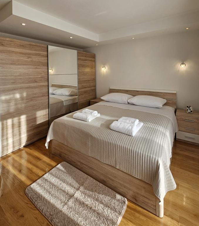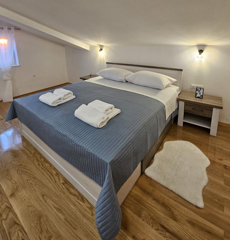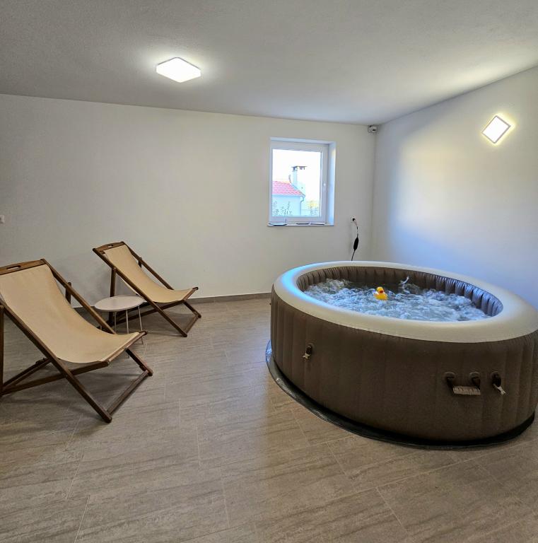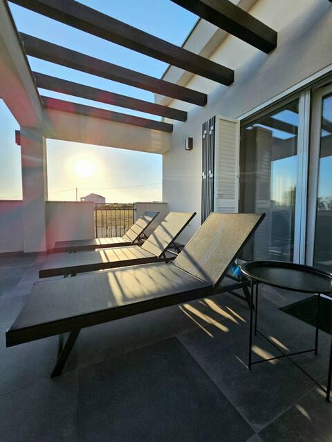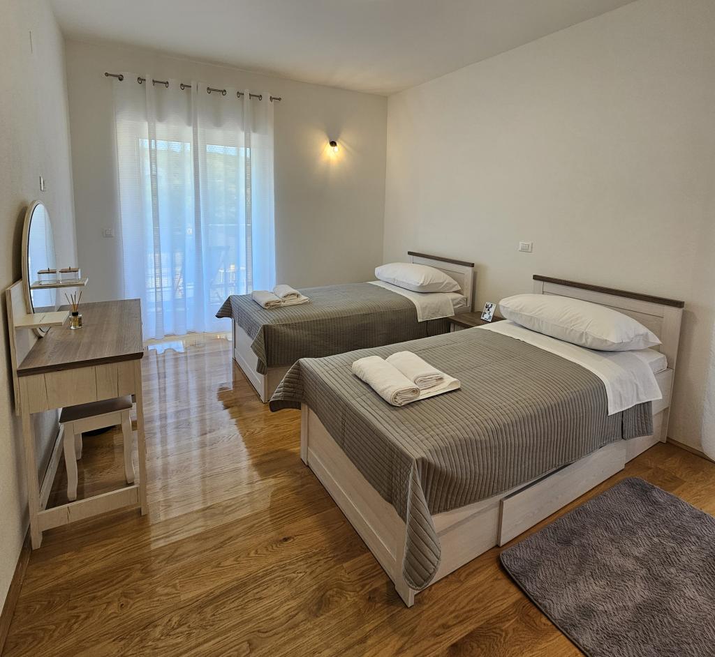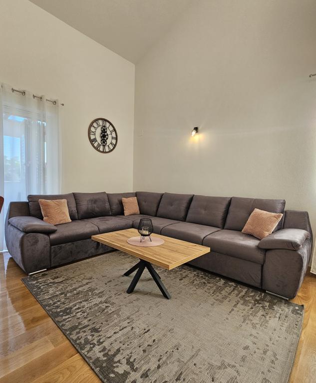 Velkommen til jeres 324 m² store familieferiehus nær Zadar — et rummeligt hjem designet til afslapning og sjov. Forældre kan slappe af i det private spabad eller holde sig aktive i det fuldt udstyrede fitnesscenter, mens børnene nyder deres egen sikre udendørs legeplads. Huset har komfortabel plads til op til 10 gæster og tilbyder fem omhyggeligt møblerede soveværelser, tre moderne badeværelser, to fuldt udstyrede køkkener, en spiseplads og en lys stue med tv. Et dedikeret arbejdsområde og vaskerum giver ekstra bekvemmelighed ved længere ophold. Gå udenfor i den fuldt indhegnede private have, der sikrer privatliv og sikkerhed, ideelt for familier med børn. Udendørsliv er højdepunktet i dette hjem med to balkoner med liggestole og en stor terrasse med grill, et rummeligt udendørs spiseområde og et afslappende område til solbadning — perfekt til at nyde varme dalmatiske aftener. Der er gratis privat parkering på stedet.