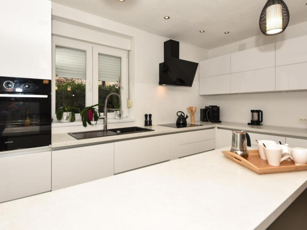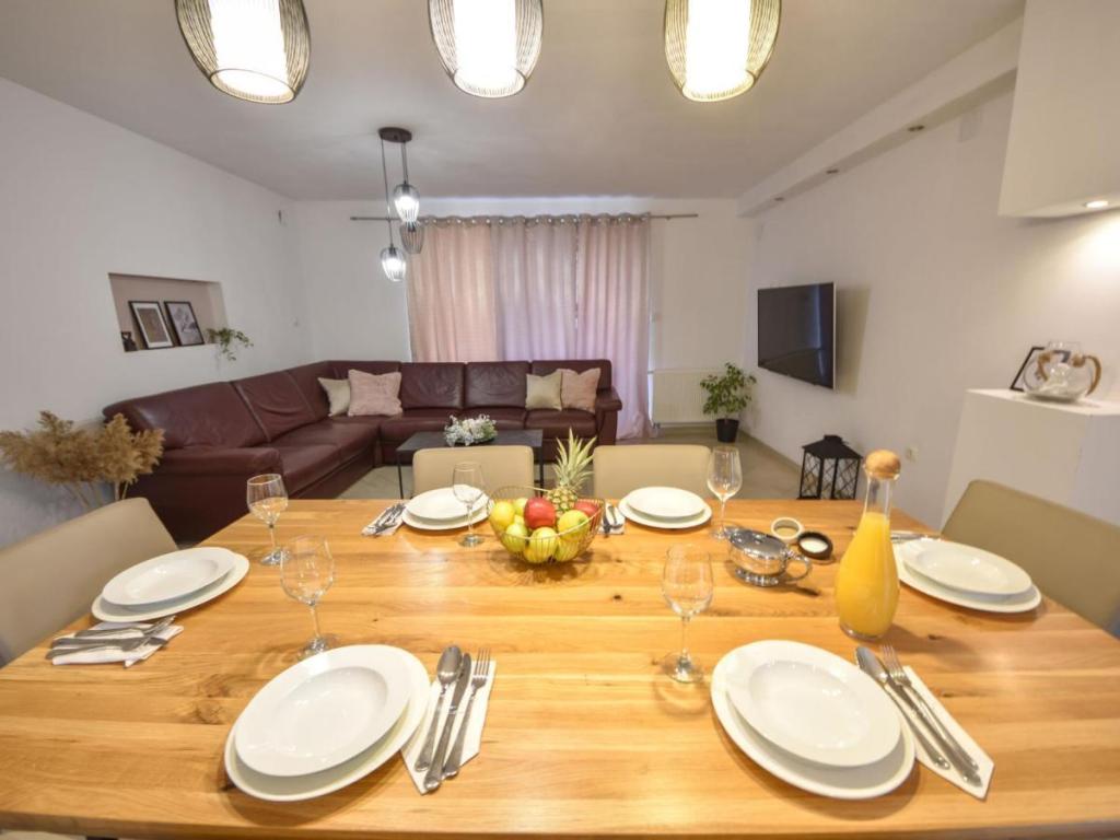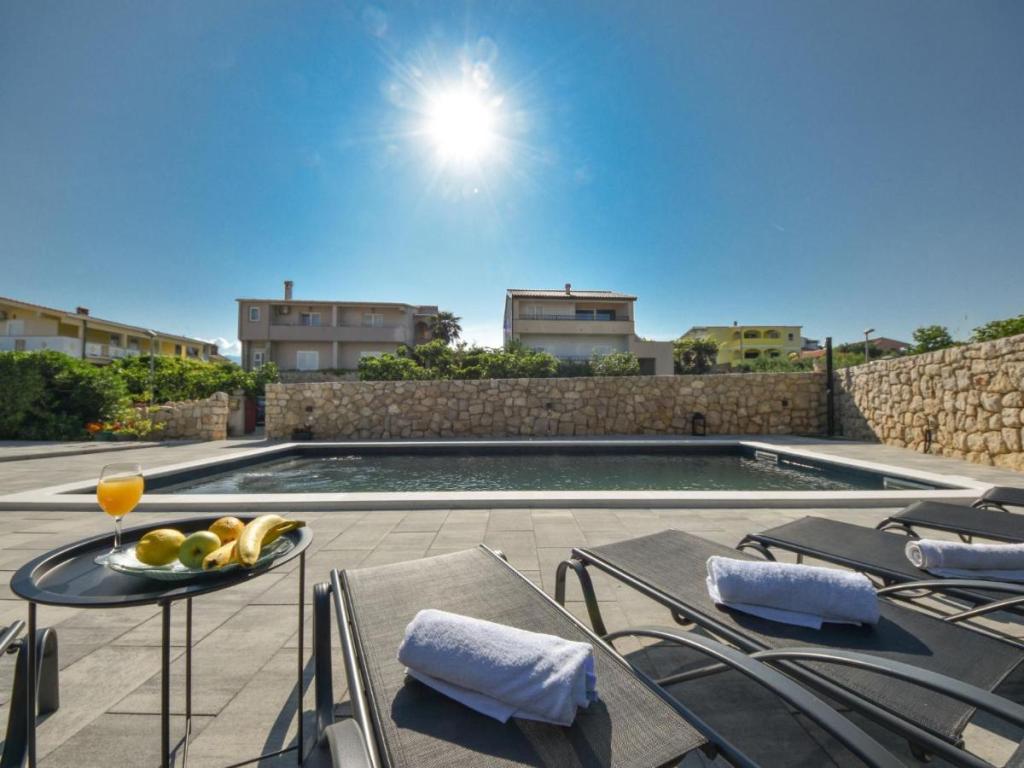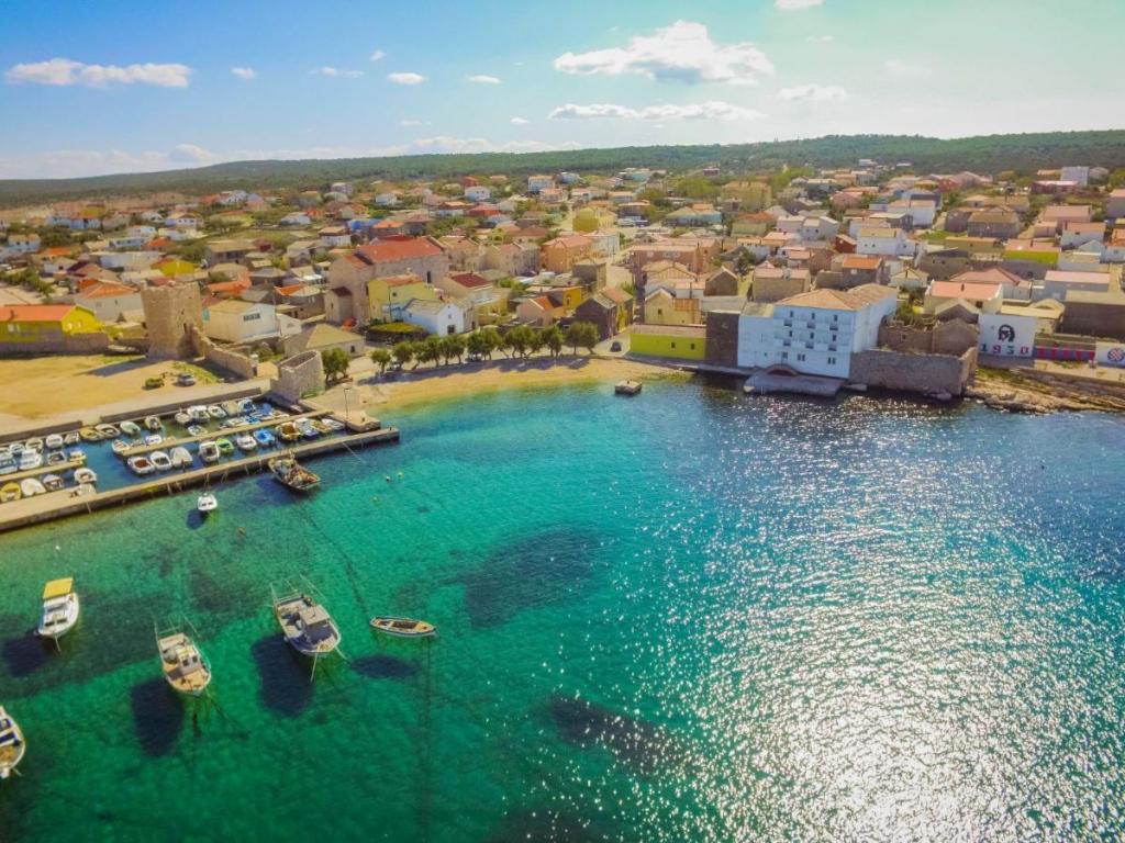 Det fritliggende hus "Villa Matino" i 2 etager ligger 400 m fra centrum af Ražanac, i en rolig og solrig beliggenhed, 440 m fra havet og stranden. På en indhegnet grund på 500 m² har gæsterne adgang til en privat swimmingpool (8 x 4 m, dybde 145 cm, sæsonåben 15.5.-15.10.), en udendørs bruser og en grill. Poolen vedligeholdes af ejeren. Huset tilbyder gratis internet, en vaskemaskine, 4 klimaanlæg og parkering til 3 biler. Ejeren accepterer ikke yngre grupper. Huset er 250 m² og består af 2 lejligheder, der lejes sammen - ideelt for grupper, der ønsker privatliv og fælles plads. Den mindre lejlighed har 2 soveværelser (180x200 cm), et køkken, en spisestue, en stue, et badeværelse og 3 terrasser (2 med havudsigt). Den større lejlighed har 3 soveværelser (2x 180x200 cm, 1x 140x200 cm), køkken, spisestue, stue, 2 badeværelser, 2 terrasser og et opbevaringsrum.