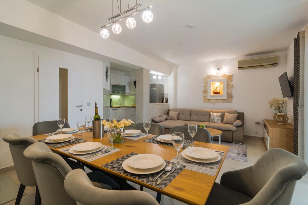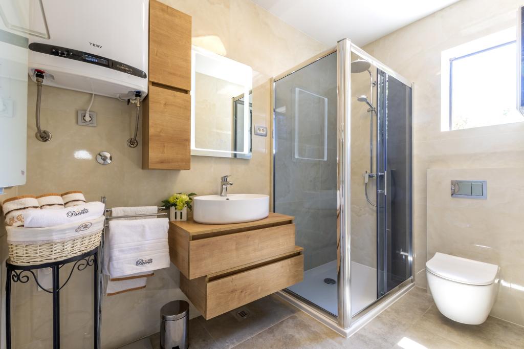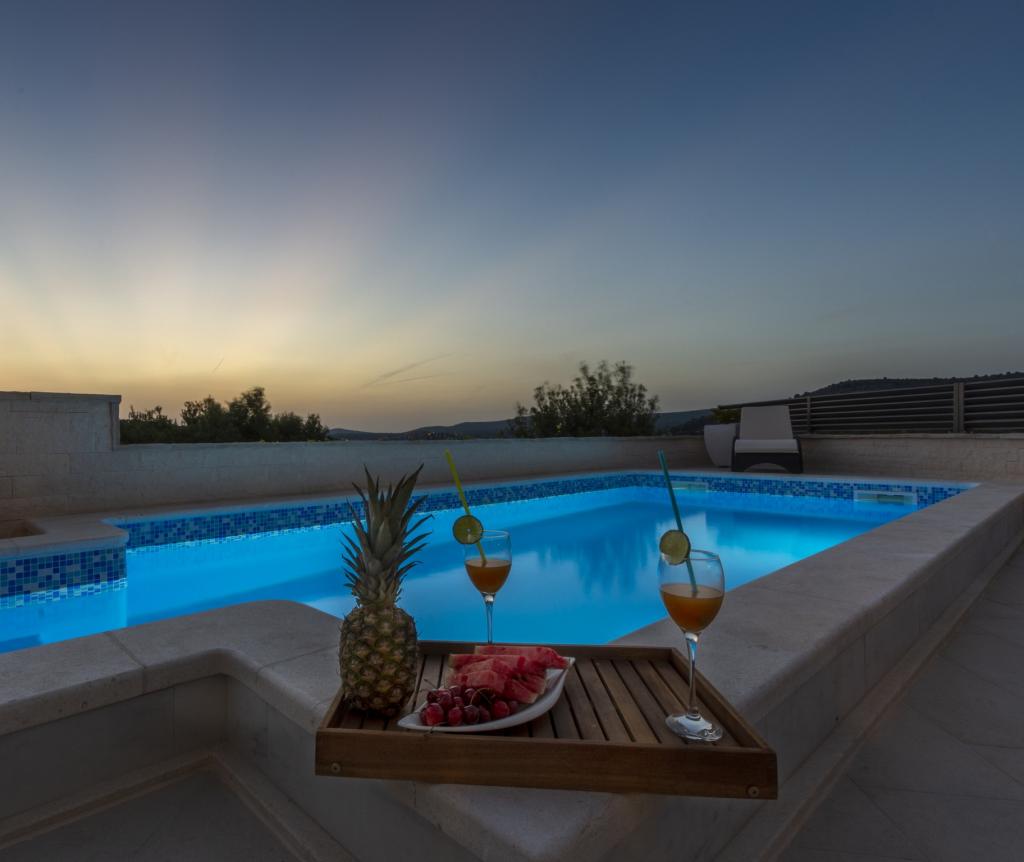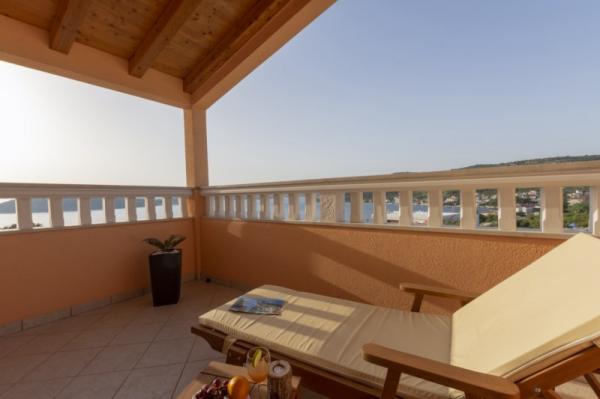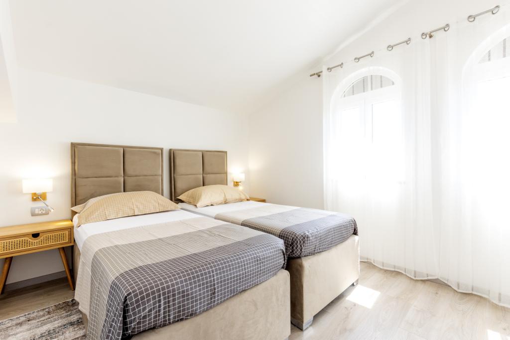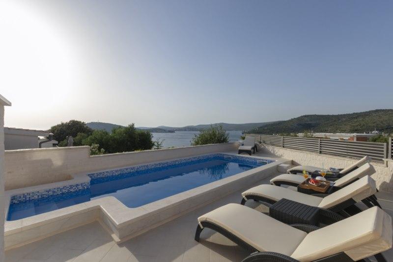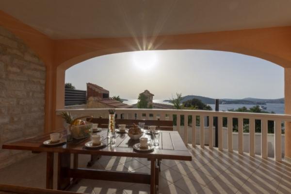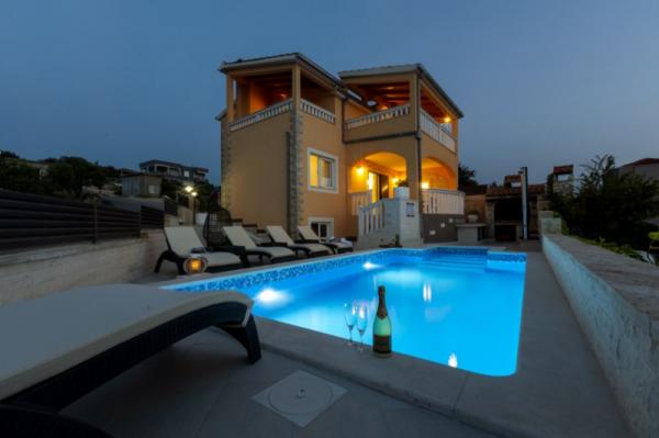 Det nybyggede feriehus ligger i et roligt sted væk fra støj og skarer, der giver dig fredens oase til din ferie med en åben udsigt over det krystalklare hav. Huset består af 4 soveværelser, 2 badeværelser, køkken og stue, 2 terrasser og en balkon med udsigt over morgenafgang og den magiske aften solnedgang. På gården er der en opvarmet swimmingpool med massagestråler og liggestole, en udendørs bruser og en stor grill, som kun er vores gæster til tjeneste, og har sin egen parkeringsplads.