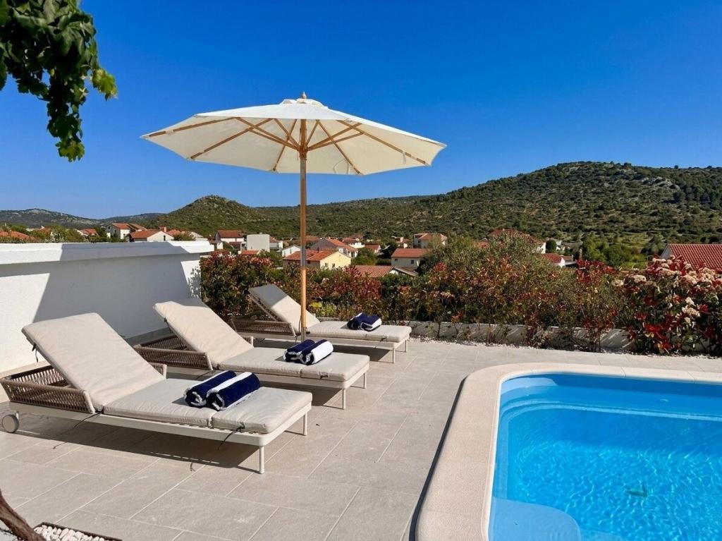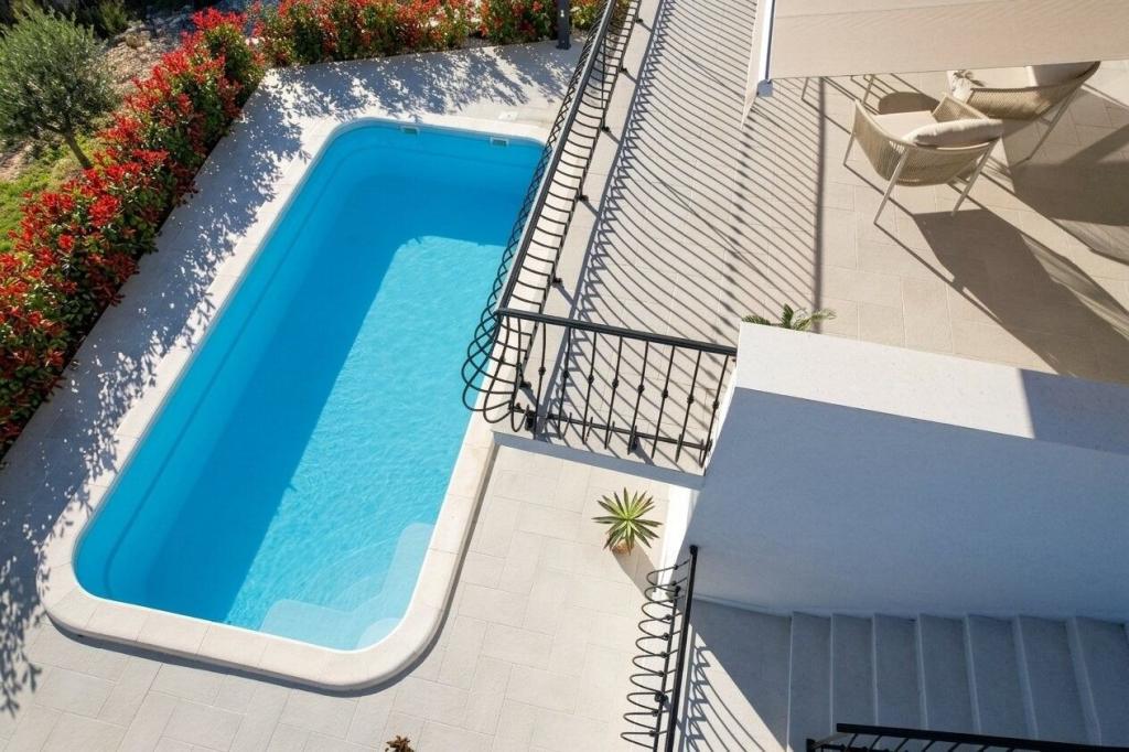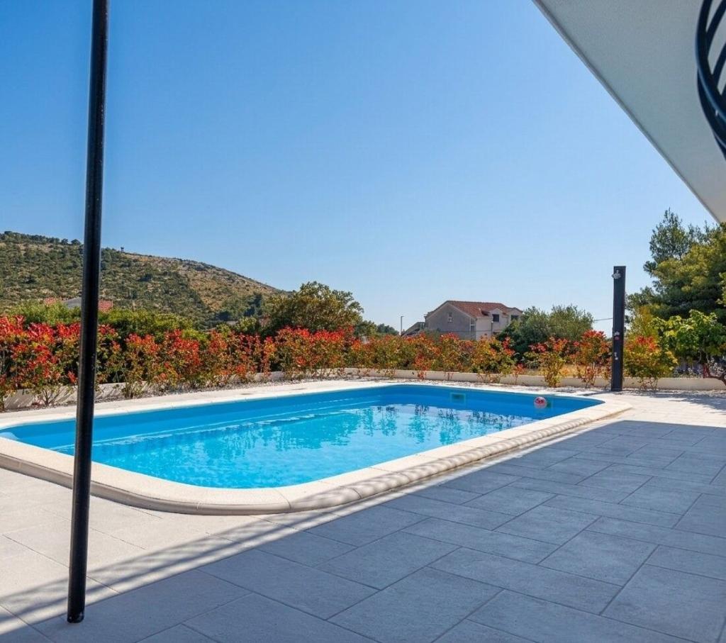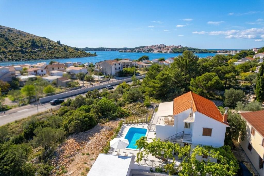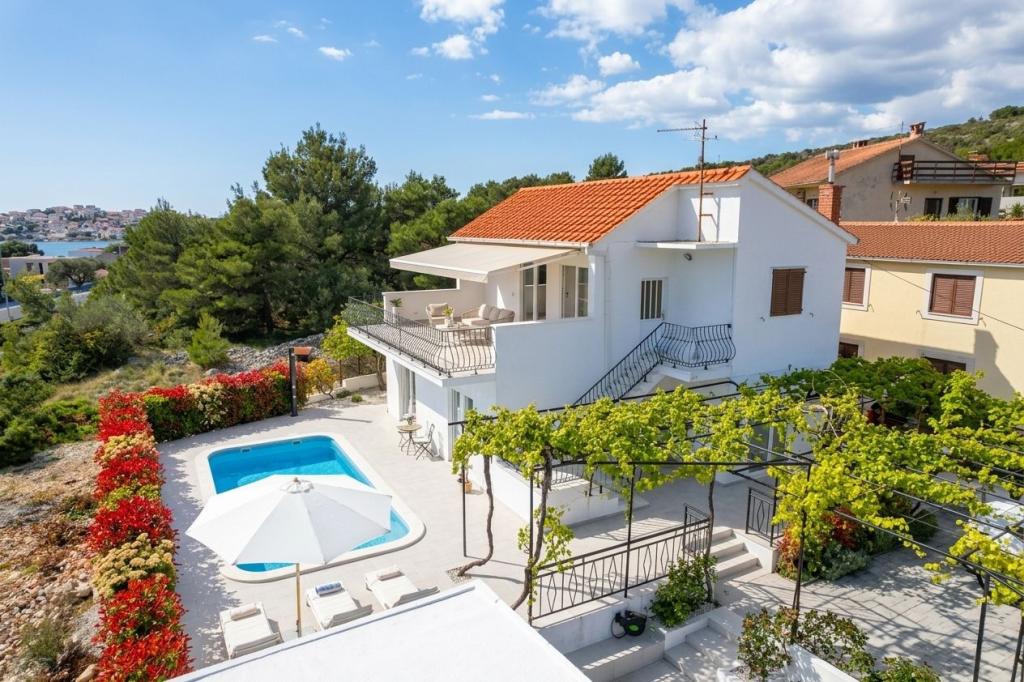 Denne villa i middelhavsstil ligger nær de uberørte strande i Rogoznica og Primošten og tilbyder det perfekte tilflugtssted for familier. Slap af i poolen, nyd solen på liggestolene eller nyd aftenerne ved pejsen. Med 4 rummelige soveværelser, 3 moderne badeværelser, privat parkering, grill og en stor terrasse på øverste etage kombinerer denne villa komfort og charme. Kun 300 m fra stranden er det det ideelle sted for en afslappende og uforglemmelig ferie.