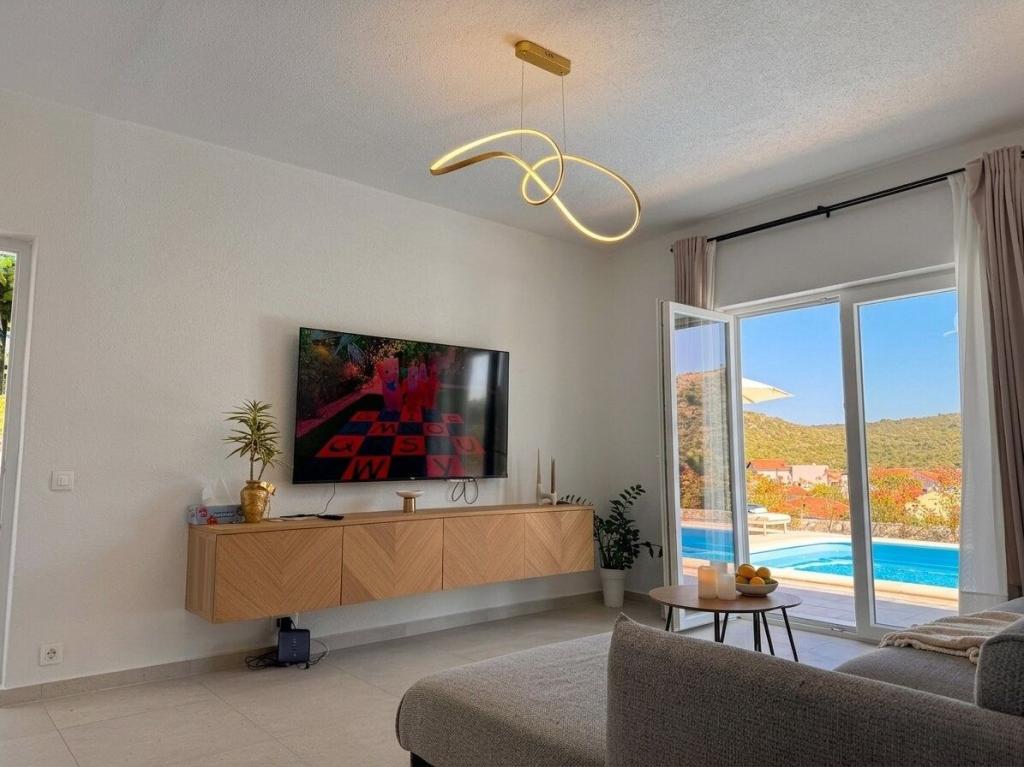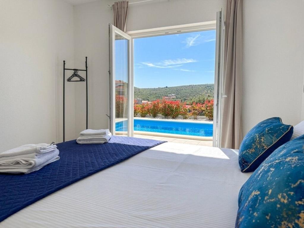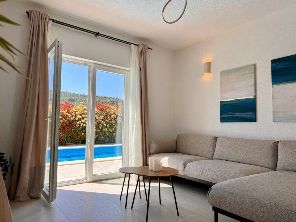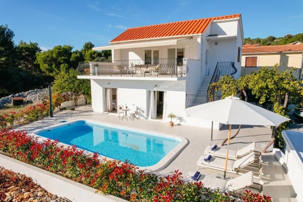 Denne villa i middelhavsstil ligger nær de uberørte strande i Rogoznica og Primošten og tilbyder det perfekte tilflugtssted for familier. Slap af i poolen, nyd solen på liggestolene eller nyd aftenerne ved pejsen. Med 4 rummelige soveværelser, 3 moderne badeværelser, privat parkering, grill og en stor terrasse på øverste etage kombinerer denne villa komfort og charme. Kun 300 m fra stranden er det det ideelle sted for en afslappende og uforglemmelig ferie.