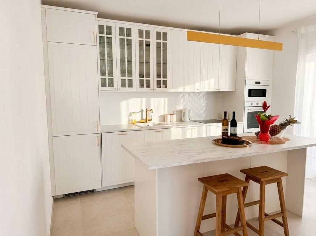 Turistskat er inkluderet i prisen.Denne elegante villa tilbyder den perfekte blanding af komfort og stil på tværs af to rummelige etager. Den har fire smukt indrettede soveværelser - to bekvemt placeret i stueetagen og to på øverste etage - samt tre moderne badeværelser. Stueetagen har et fuldt udstyret, stilfuldt køkken og en hyggelig stue, ideel til afslapning eller underholdning. Ovenpå finder du en rummelig terrasse med et komfortabelt siddeområde og parasol, perfekt til at nyde varme aftener eller nyde udsigten. Udendørsområdet er designet til afslapning og socialisering med en privat pool med liggestole, et hyggeligt siddeområde ved pejsen og et stort udendørs spisebord, der komfortabelt kan rumme op til otte gæster.