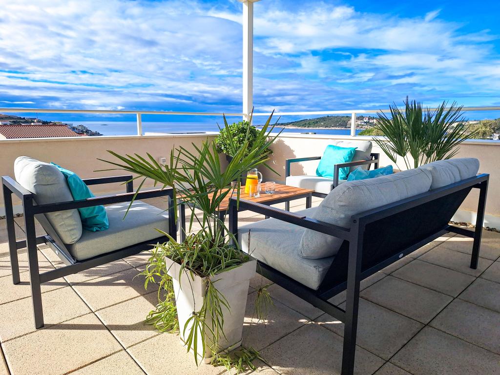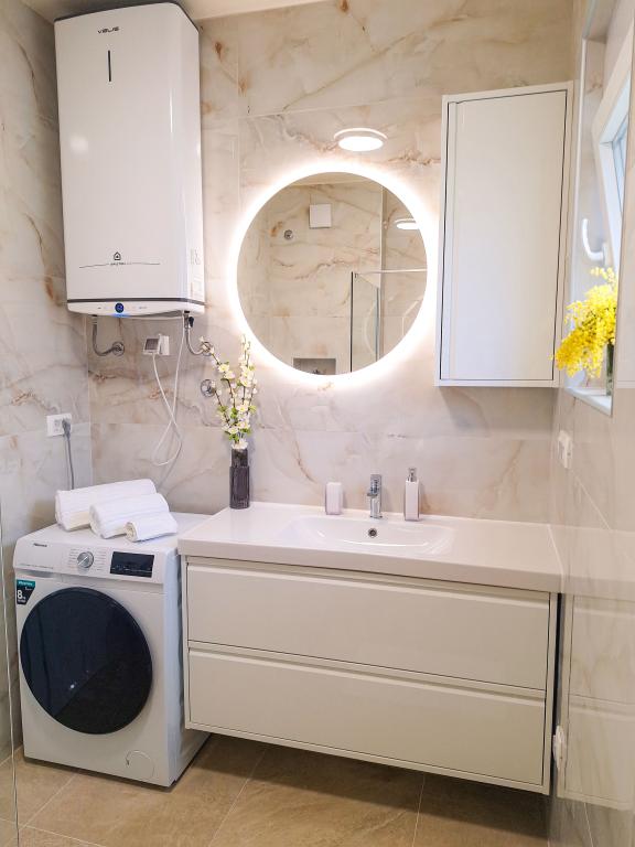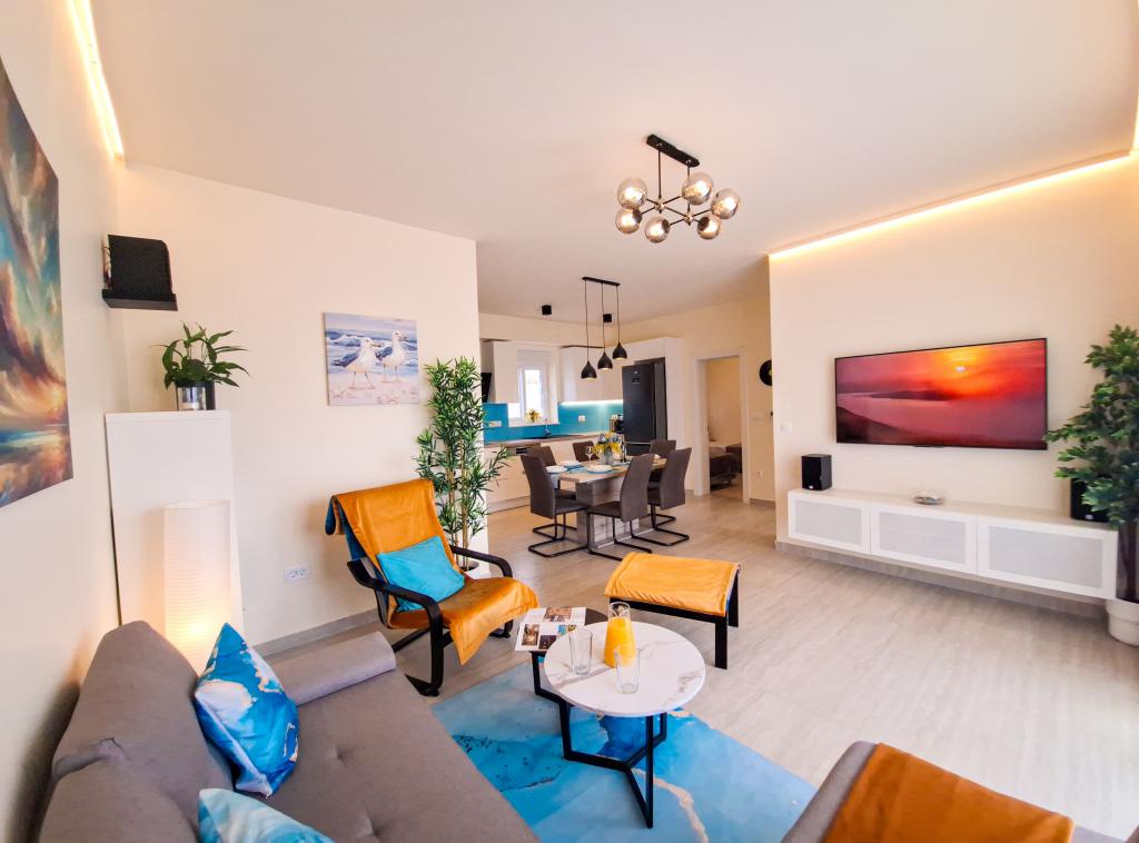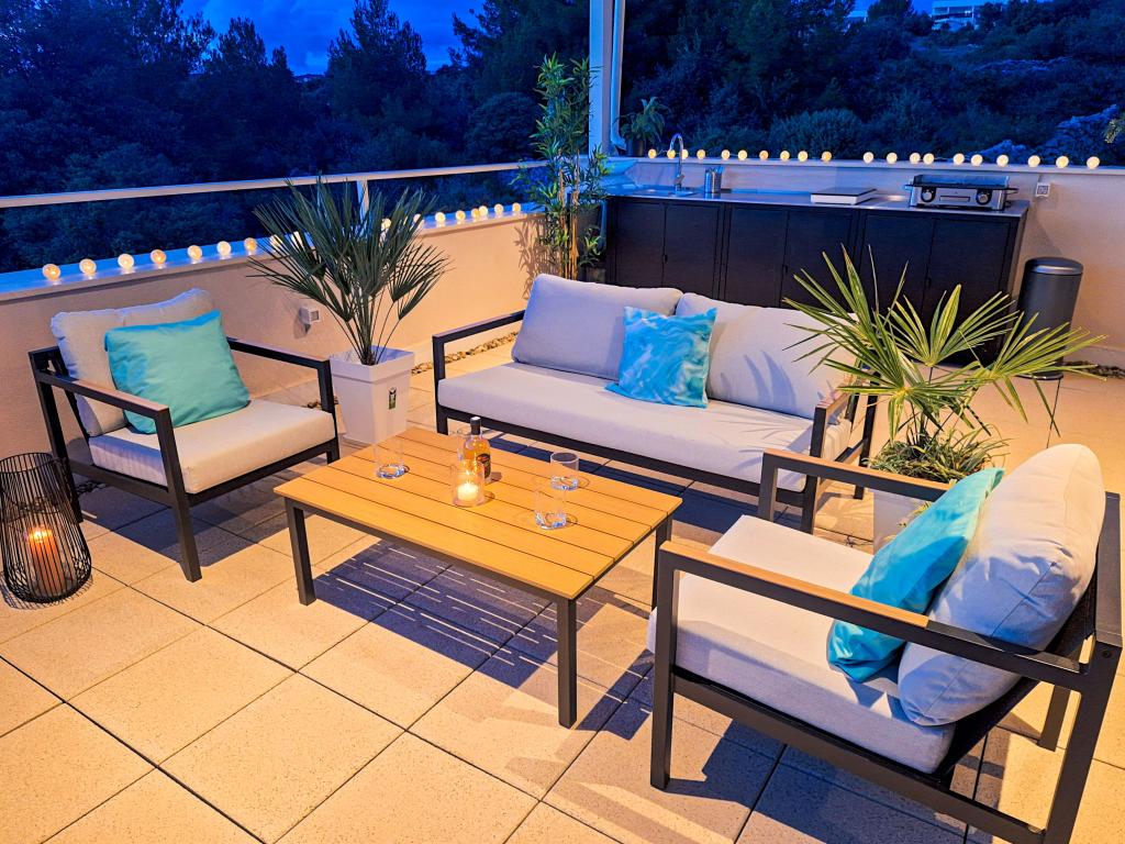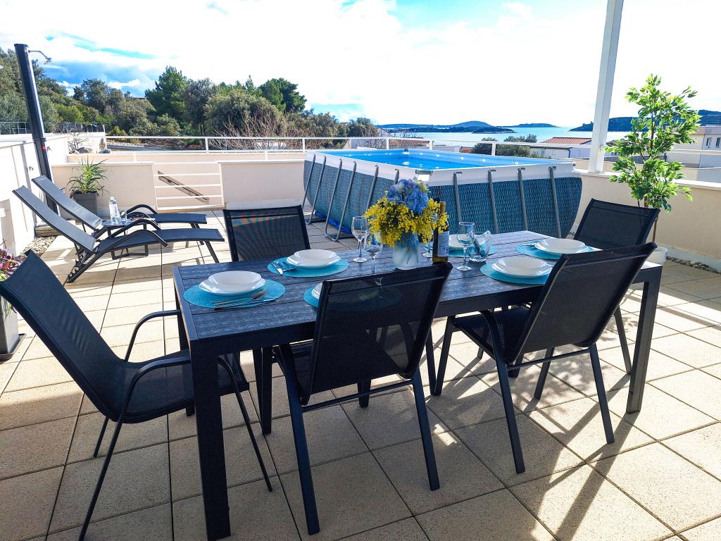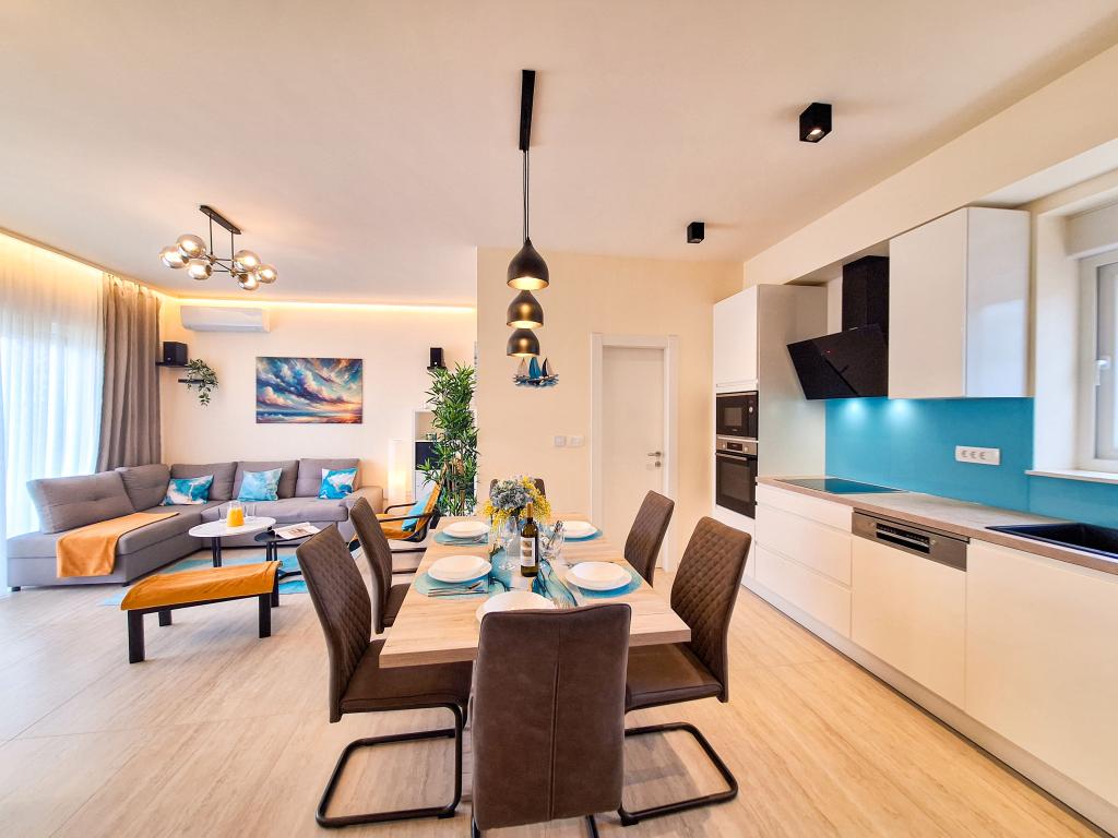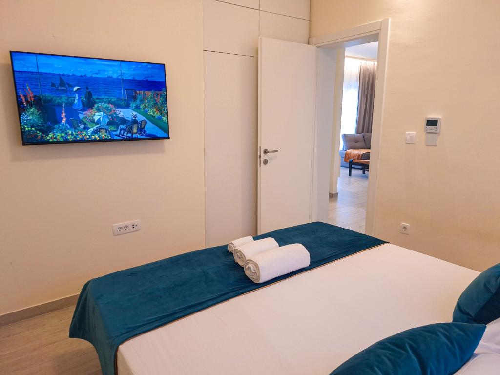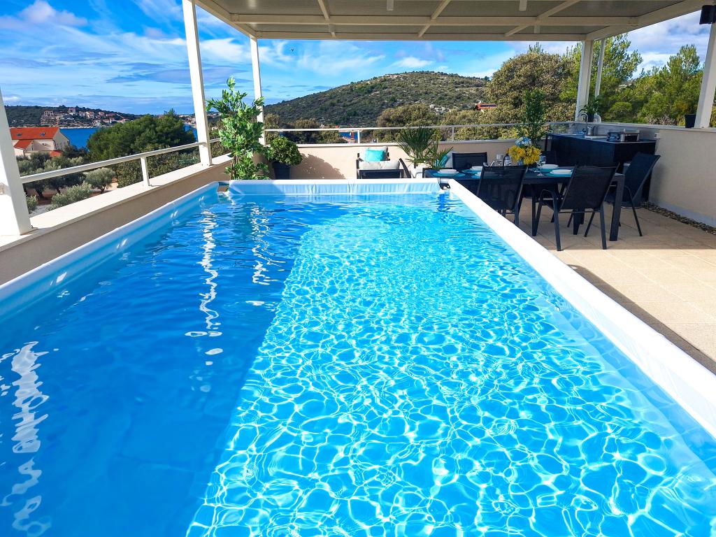Velkommen til Tesa, en ny, moderne villa, hvor I kan nyde jer selv fuldt ud med familie eller venner. Denne elegante villa til op til 6 gæster tilbyder et fuldt udstyret køkken, et moderne badeværelse med bruseniche og vaskemaskine/tørretumbler samt aircondition og tv i hvert værelse. Tagterrassen med udsigt over havet og øerne har en opvarmet pool, en udendørs bruser og liggestole til afslapning om dagen med jeres yndlingsbog eller musik fra udendørshøjttalere og aftennydelse under stjernerne med et glas af jeres yndlingsdrink. Terrassen med et fuldt udstyret køkken (grill, komfur, køleskab), spisebord og siddeområde giver jer mulighed for at tilbringe hele dagen udendørs. Madlavning med en behagelig brise fra havet vil gøre denne oplevelse yderst behagelig. Den perfekte centrale beliggenhed med alle de nødvendige faciliteter og smukke strande kun 200 meter væk, samtidig med at I er omgivet af grønne områder og en smukt anlagt have skabt til afslapning, vil give jer en uforglemmelig ferie.
