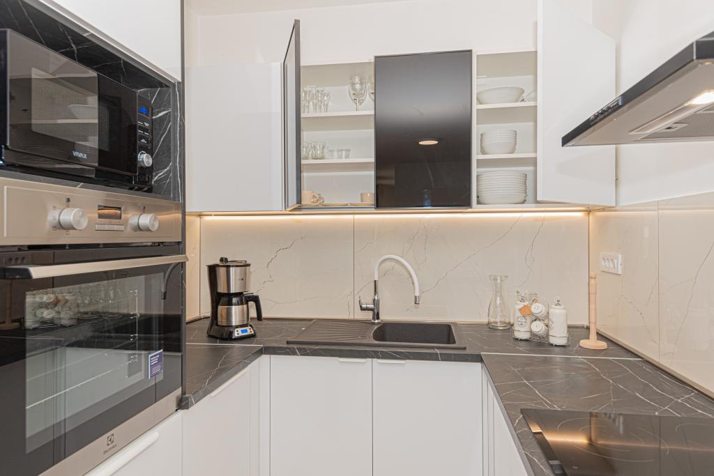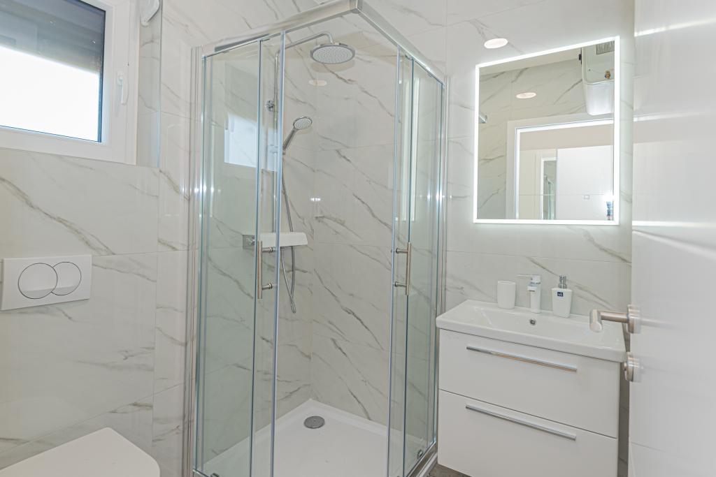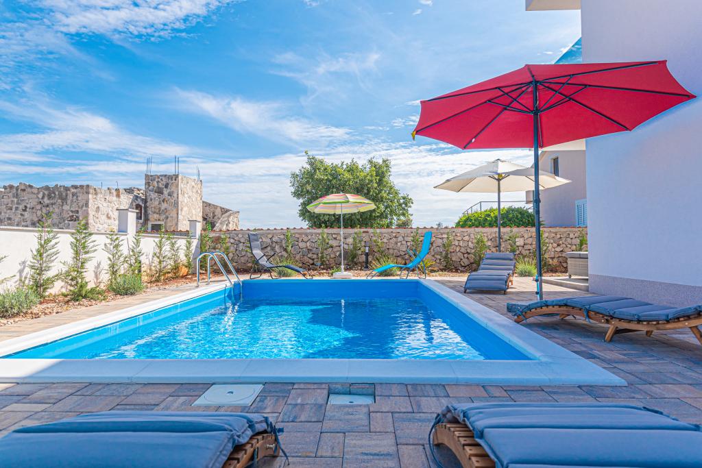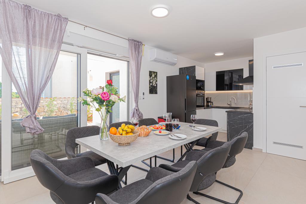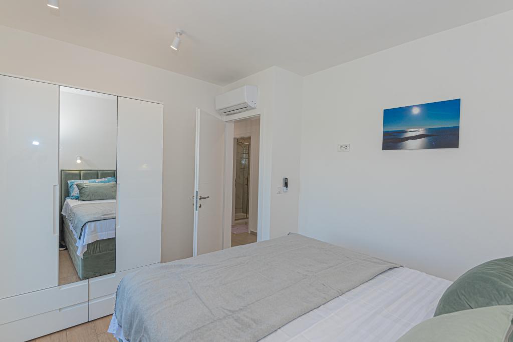Villa Adriatic Sunrise – En fredelig ferie nær Šibenik Nyd afslapning i Villa Adriatic Sunrise, et smukt feriehus med opvarmet privat pool og værelser med aircondition, perfekt til en flugt fra hverdagen. Denne rummelige villa ligger nær den historiske by Šibenik og tilbyder en smuk udsigt fra den store terrasse, ideel til at nyde solen og de fredelige omgivelser. Villaen består af fire elegant indrettede soveværelser, en komfortabel stue og tre fladskærms-tv'er til din underholdning og afslapning. Køkkenet er fuldt udstyret med opvaskemaskine og ovn, så du kan nyde at tilberede måltider. Tre moderne badeværelser med brusere i stueetagen sørger for luksus og komfort under hele dit ophold. Udendørsområdet er ideelt til at nyde den friske luft, uanset om du slapper af med et måltid i den udendørs spisestue eller nyder en forfriskende dukkert i poolen. Denne villa tilbyder gratis privat parkering, gratis WiFi samt rene håndklæder og sengetøj for fuld komfort.