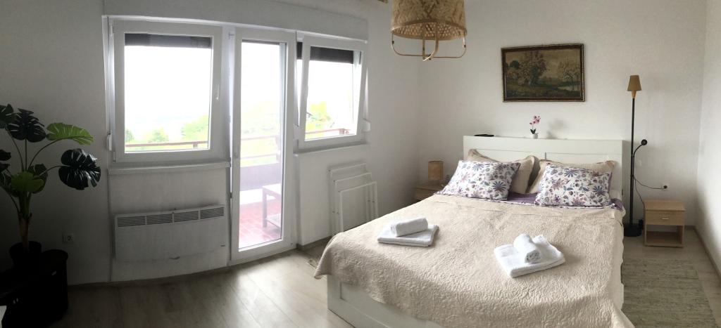 Det fuldt udstyrede feriehus ligger på en bakke omgivet af grønne områder og blomster med en smuk udsigt over Zagreb og det omkringliggende område. Kapaciteten er 8 personer. Den består af to soveværelser; en dobbeltseng og en enkeltseng, og i det andet værelse en dobbeltseng og en dobbeltseng med separate madrasser og en sofa i stuen. To badeværelser. Fuldt udstyret køkken med køleskab med lille fryser, opvaskemaskine, filterkaffemaskine, ovn... og spisebord. Stor finsk sauna. Elektriske dartpile. Stor overdækket terrasse med bord og havemøbler, der tilbyder en smuk udsigt, fuglekvidder og en stor grill. Parkering til to biler og wi-fi er inkluderet i lejeprisen. I sommermånederne er der jacuzzi og ekstra liggestole til rådighed. I området kan du vandre, gå ture, cykle, fiske, besøge stedet med verdens hurtigste bil, Adrenalinparken, og nyde lokal gastronomi.