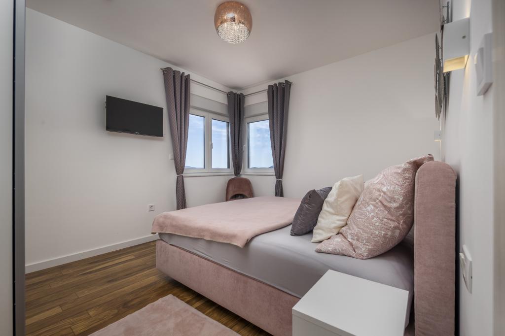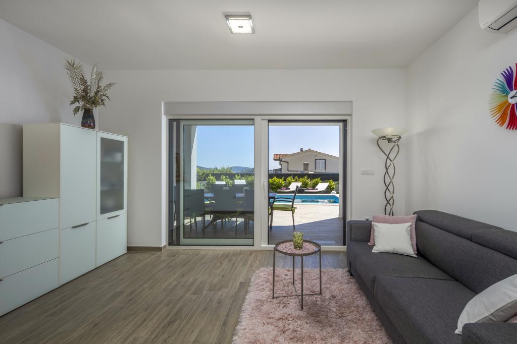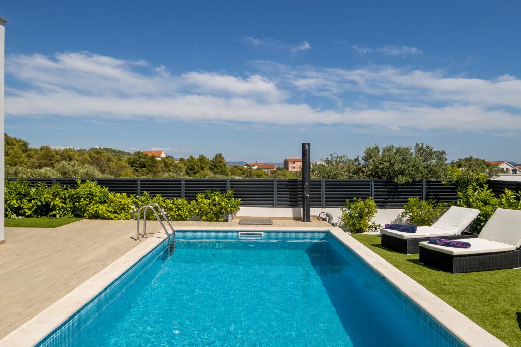 Den moderne indrettede Villa Colin, beliggende i den smukke lille fiskerlandsby Tribunj, med tre rummelige soveværelser og to luksuriøse badeværelser, giver et perfekt tilflugtssted for familier eller små grupper af venner. Villaen har desuden to ekstra toiletrum for ekstra komfort og praktisk. Ejendommens højdepunkt er bestemt den smukke have med et poolareal på 32 m2. Her kan gæsterne slappe af og nyde de varme kroatiske solstråler, mens de svømmer i krystalklart vand. Hvert værelse tilbyder også en spektakulær udsigt over havet og øerne. For dem, der ønsker at udforske området, er der tre parkeringspladser til rådighed for komfortabelt at ankomme i bil. Derudover har gæsterne tre cykler til deres rådighed for at udforske de maleriske gader og stier i det omkringliggende område. Uanset om du vil slappe af i haven, svømme i poolen eller udforske omgivelserne, tilbyder denne villa alt, hvad du behøver for et uforglemmeligt ophold i Kroatien.