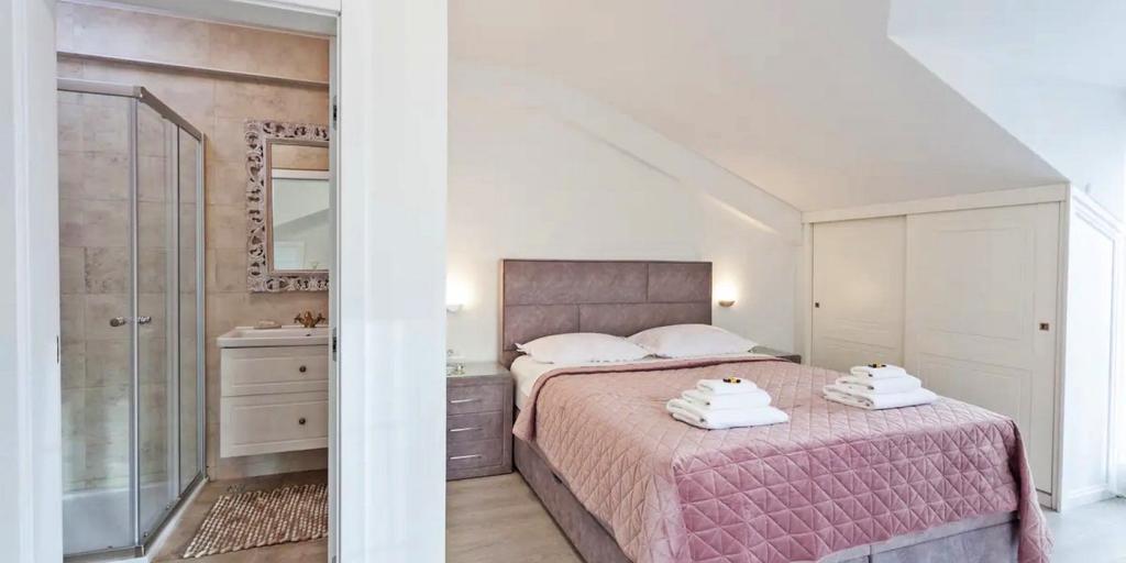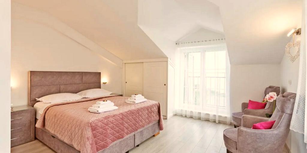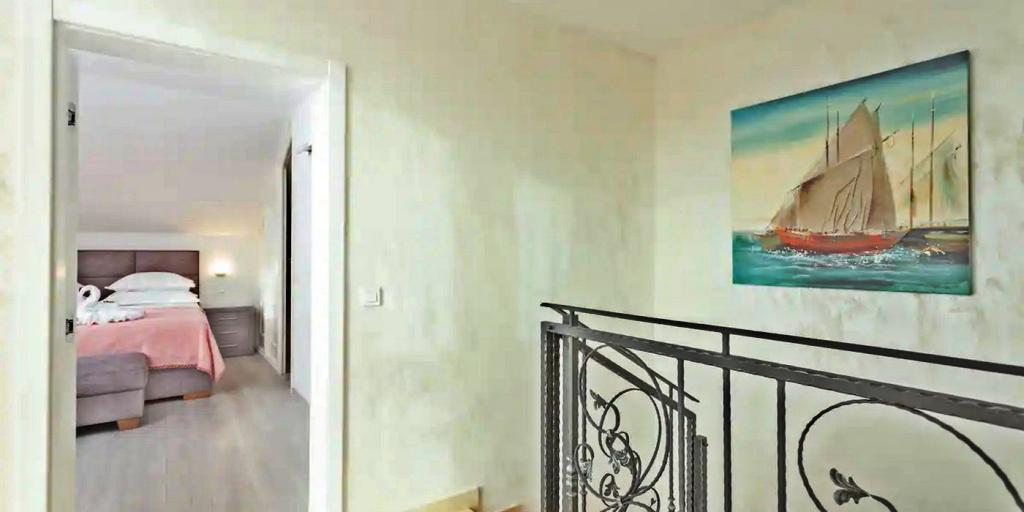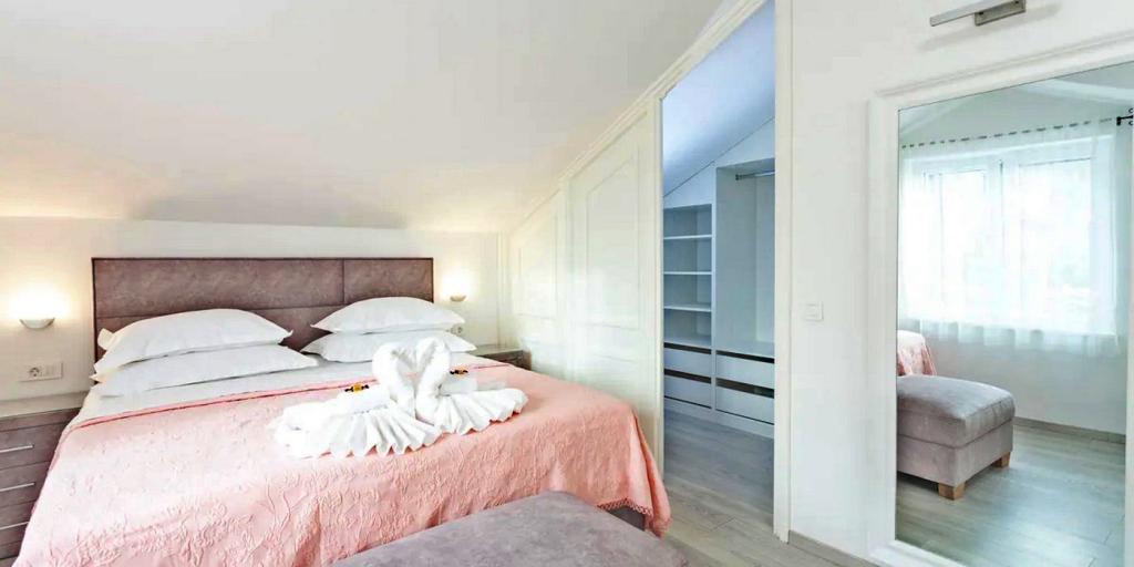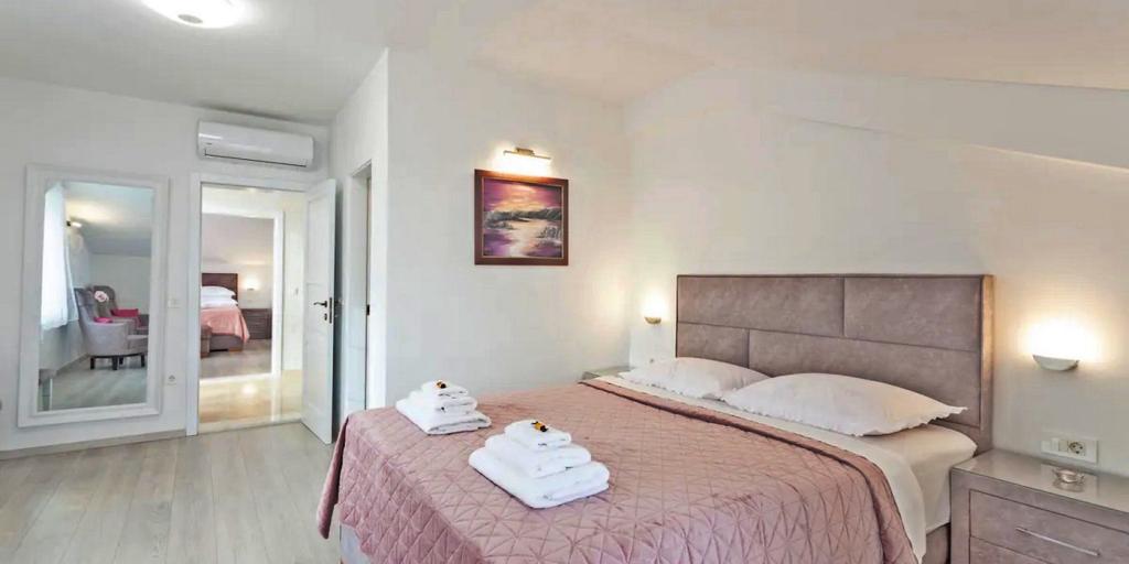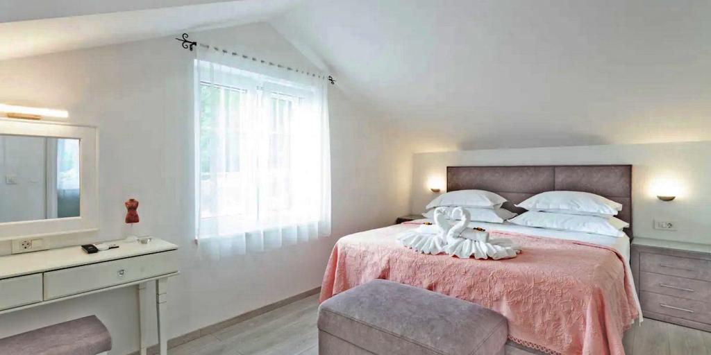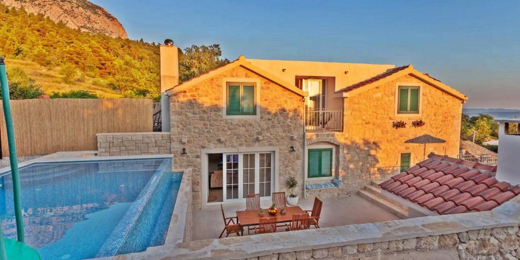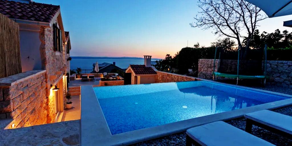 Huset består af to rummelige værelser med private badeværelser inde i hvert værelse, som kan sove 4 personer, og om nødvendigt kan der tilføjes 1 ekstra seng til én person. Udstyret med al den nødvendige elektronik (opvaskemaskine, vaskemaskine, TV i hvert værelse, wifi), et rummeligt køkken, stue, samt en udendørs grill, hvor du kan tilberede de smukkeste lækkerier af frisk fisk eller kød til dine kære. Huset har en swimmingpool med strand, hvor du kan hygge dig væk fra byens travlhed. Der er også to store terrasser med siddemøbler i to etager, hvor den højeste terrasse byder på udsigt over øerne og havet, som om du holdt dem i din hule hånd. Huset byder desuden på 2 overdækkede parkeringspladser. Ved siden af huset er Biokovo Nature Park-stien, en af de mange stier fører dig til den smukke gamle kirke