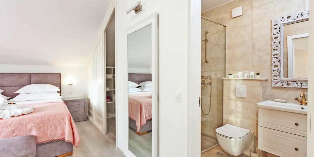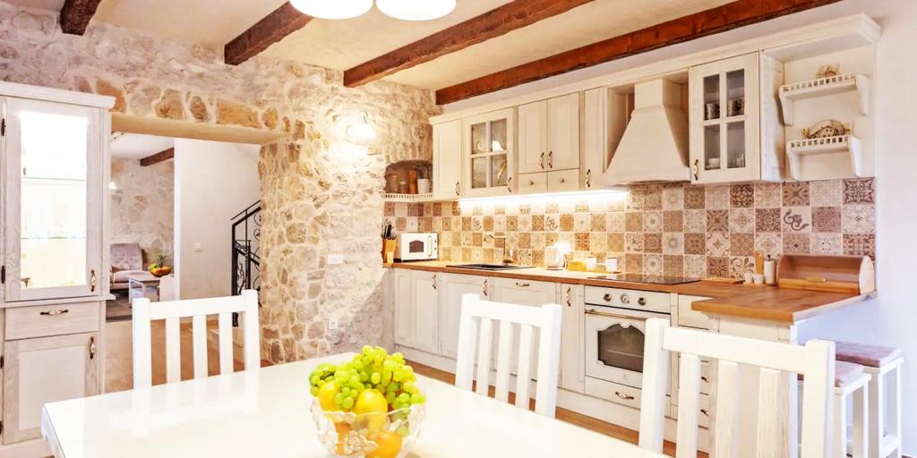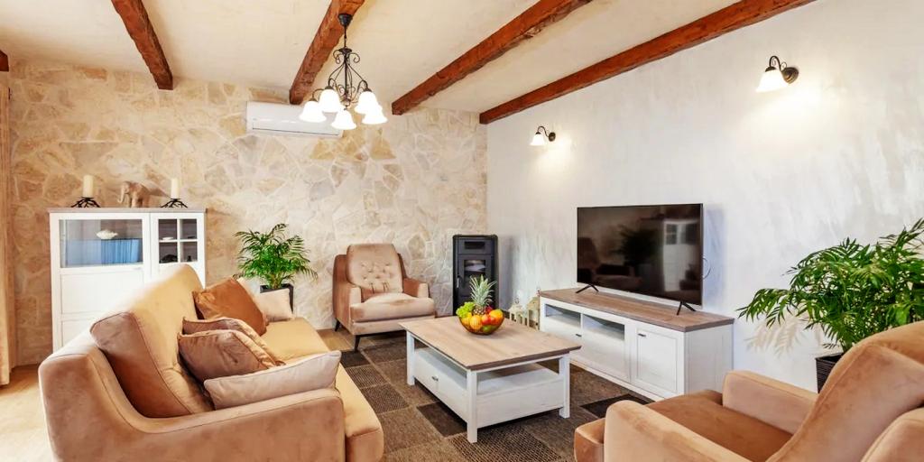 En spektakulær håndbygget villa beliggende i hjertet af naturen, hvor din sjæl og krop vil genoprette forbindelsen. Huset er beliggende i en indfødt landsby, der ligger på toppen af landsbyen, og tilbyder en spektakulær udsigt og fred. En del af huset er stadig originalt, og resten er håndbygget af sten fra selve landsbyen. Der er vævet en masse kærlighed ind i det, så dit ophold i det, ud over den luksus, det byder på, vil bringe dig et strejf af gamle tider. Huset ligger 5 km fra byen Makarska.