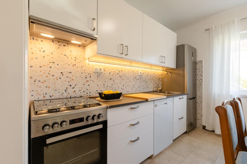 Dette store fritliggende familiehus ligger i en rolig del af Vela Luka, mindre end fem minutter fra centrum, og tilbyder 3 soveværelser, et fuldt udstyret køkken med opvaskemaskine og ovn, en stor stue, et badeværelse med bruser, en stor terrasse og 2 private parkeringspladser. Gratis Wi-Fi, aircondition i stuerne, vaskemaskine, smart-tv, hårtørrer og strygejern er tilgængelige. Håndklæder og lagner er inkluderet. Hele ejendommen med en stor have står til din rådighed. Øen Korcula er et paradis for cyklister, og dette hus har cykelopbevaring.