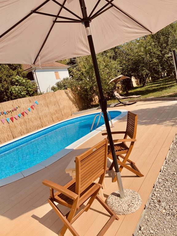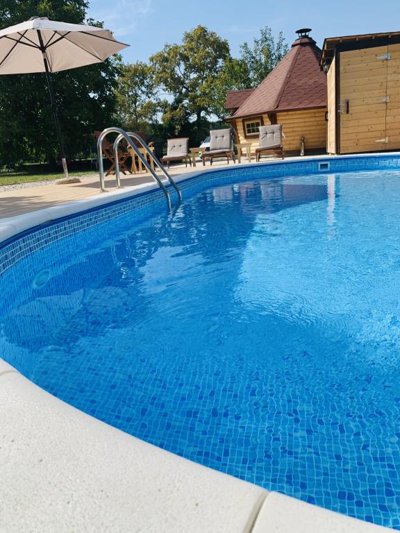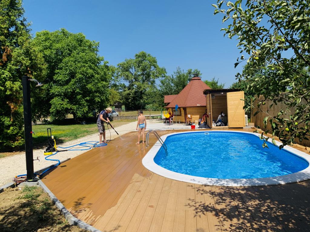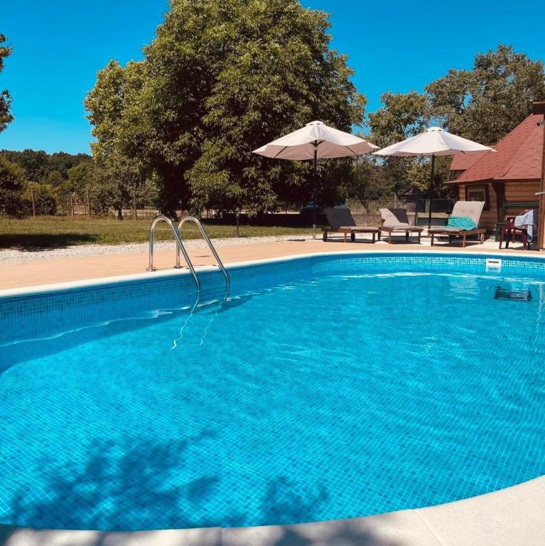 Fuldt og moderne udstyret feriehus med 4 stjerner i et weekendresort, helt i naturen, lige ved Bosut-floden, omgivet af skov. Anlægget har en udendørs pool 8x5 m, et spa wellness-område: jacuzzi og finsk sauna, en indhegnet gård på 1500 m2, en træhytte til at sove i og en hytte med Ofyr-grill. For et ophold på max 6 personer. 20 km til den heroiske by Vukovar, 40 km til Baranja.