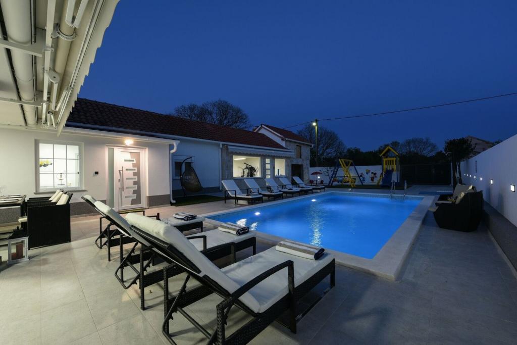 Privat villa Mare med opvarmet pool. Beliggende mellem byen Zadar (2 km) og lufthavnen (5 km). Villa Mare er et nyrenoveret og fuldt møbleret feriehus. Villaen har en privat opvarmet pool, tre soveværelser (hvoraf to kan laves om til en udtræksseng), en stue med fladskærms-tv (139 cm), et fuldt udstyret køkken med spiseplads, to badeværelser, et festlokale (billard, dart, PlayStation), et fitnessområde med fladskærms-tv (139 cm). Alle værelser har aircondition. Villaen tilbyder også et sommerkøkken med indendørs grill. Villaen udlejes også fra 1,10 til 1,4 til en pris på 3000 euro pr. måned, mens minimumslejeperioden er en måned.