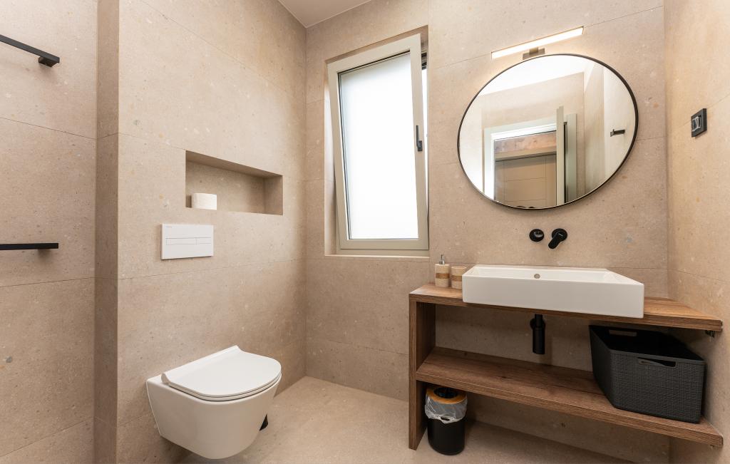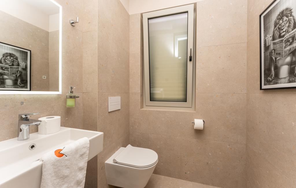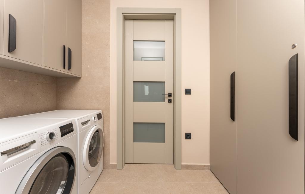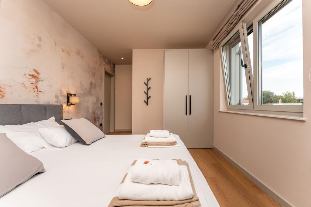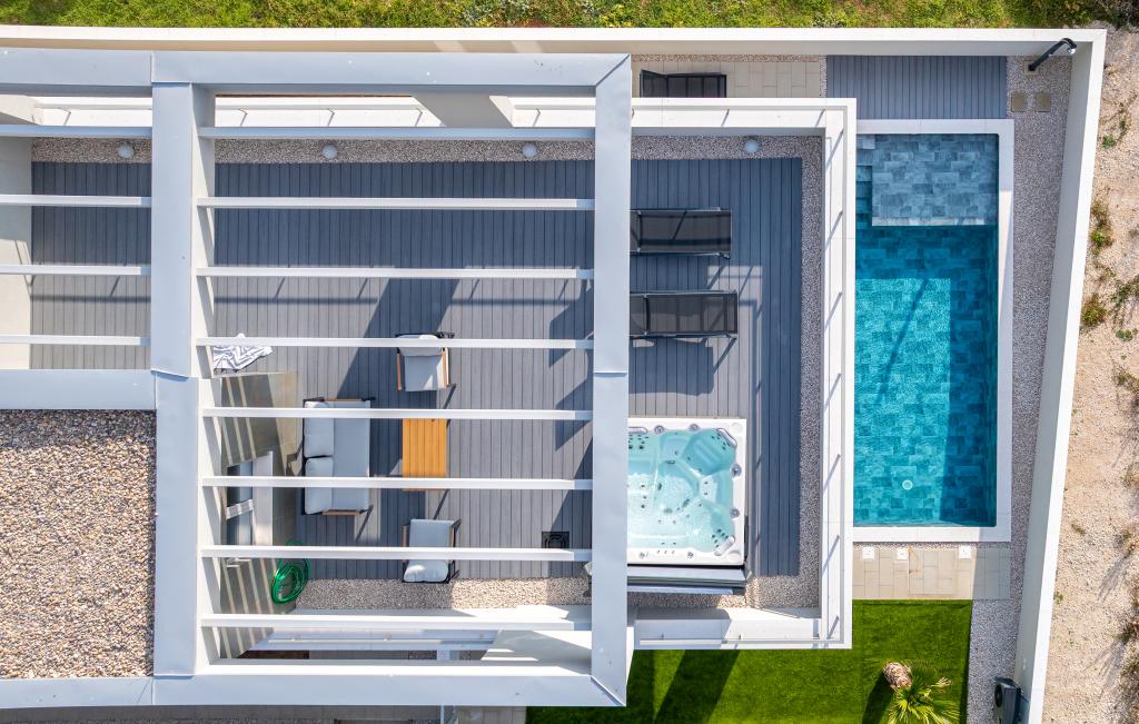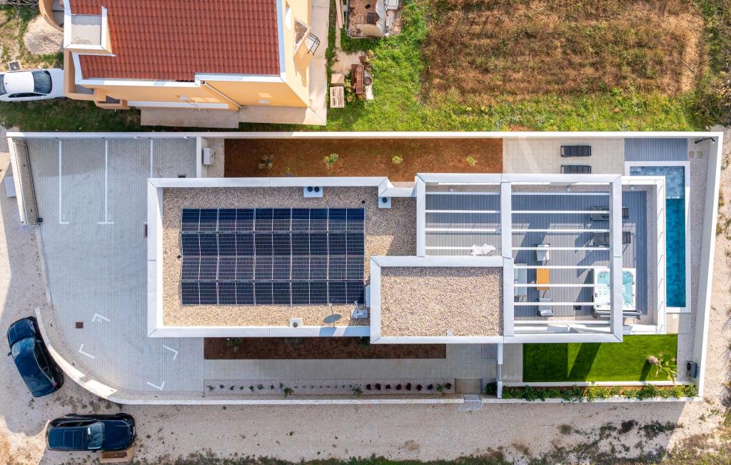 Huset på cirka 270 m² ligger i Zaton, 12 km nordvest for Zadar. Bygningen er ny og stod færdig i juni 2025. I den indhegnede have er der 4 parkeringspladser, 2 ladestandere til elbiler, en 30 m2 opvarmet pool og en stor terrasse, hvor I kan nyde skyggen indtil om eftermiddagen. Huset har to lejligheder, der er identiske i planløsning, hver med en stue, et fuldt udstyret køkken, 3 soveværelser, 2 badeværelser og et ekstra toilet. Alle værelser har aircondition og er udstyret med et smart-tv. Huset er designet til 12 personer. PS5 er placeret i børneværelset på hver etage af huset. På husets tag er der en terrasse med havudsigt, et ekstra tekøkken, havemøbler og et massagebadekar til nydelse i løbet af dagen og aftenen. I kan nyde vores faciliteter med familie og/eller venner og være sammen, men også separat (hver i sin egen lejlighed), når I har brug for det. Om dagen vil du helt sikkert nyde poolen og skyggen fra den nederste terrasse, mens du om aftenen kan nyde tagterrassen.