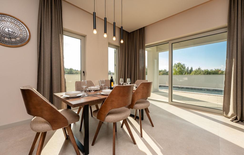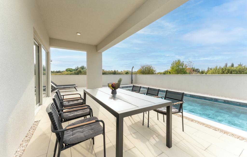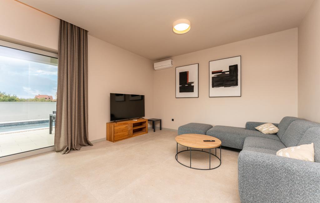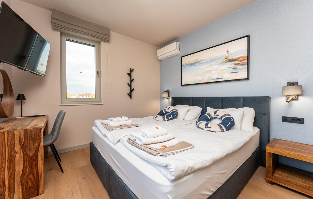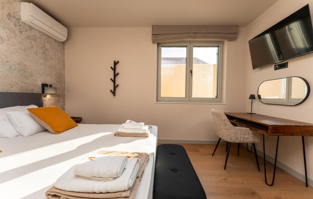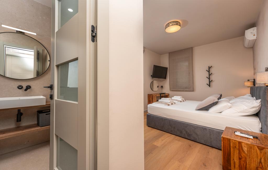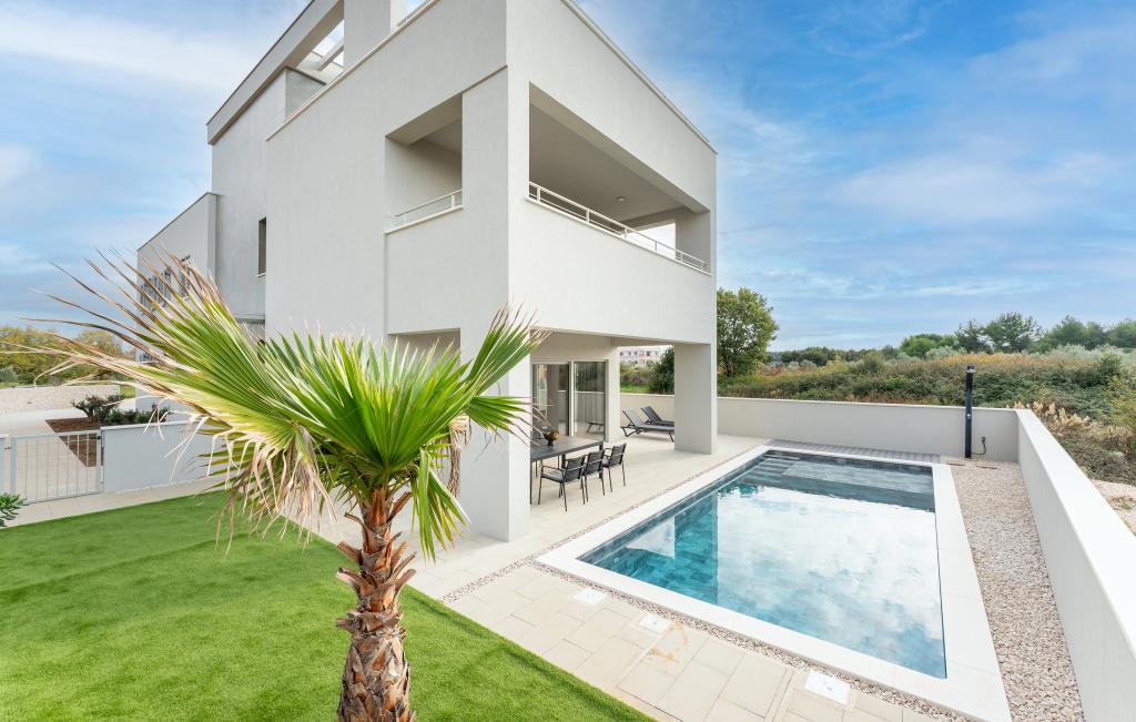 Huset på cirka 270 m² ligger i Zaton, 12 km nordvest for Zadar. Bygningen er ny og stod færdig i juni 2025. I den indhegnede have er der 4 parkeringspladser, 2 ladestandere til elbiler, en 30 m2 opvarmet pool og en stor terrasse, hvor I kan nyde skyggen indtil om eftermiddagen. Huset har to lejligheder, der er identiske i planløsning, hver med en stue, et fuldt udstyret køkken, 3 soveværelser, 2 badeværelser og et ekstra toilet. Alle værelser har aircondition og er udstyret med et smart-tv. Huset er designet til 12 personer. PS5 er placeret i børneværelset på hver etage af huset. På husets tag er der en terrasse med havudsigt, et ekstra tekøkken, havemøbler og et massagebadekar til nydelse i løbet af dagen og aftenen. I kan nyde vores faciliteter med familie og/eller venner og være sammen, men også separat (hver i sin egen lejlighed), når I har brug for det. Om dagen vil du helt sikkert nyde poolen og skyggen fra den nederste terrasse, mens du om aftenen kan nyde tagterrassen.